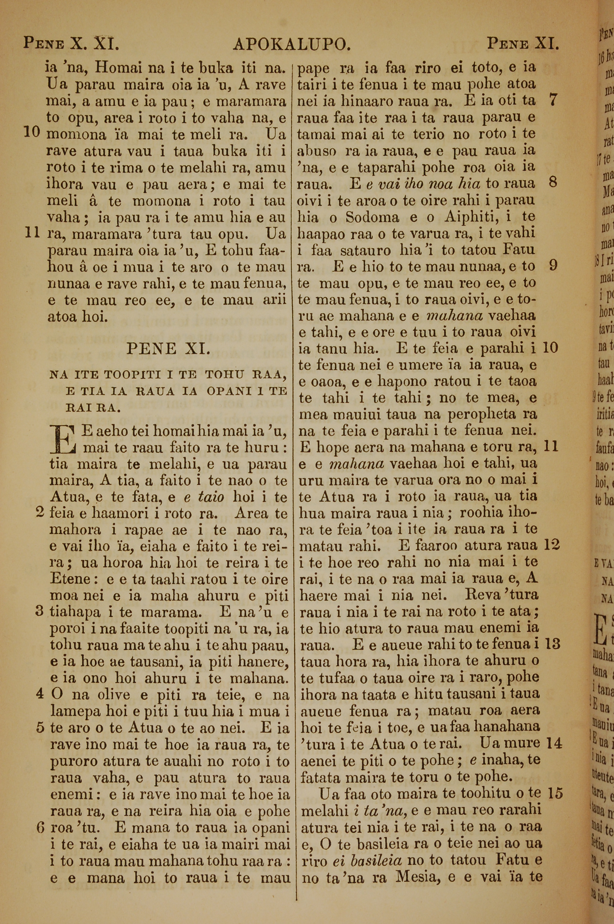 1853年塔希提语新约全书 启示录 10 章 10 节到 11 章 15 节