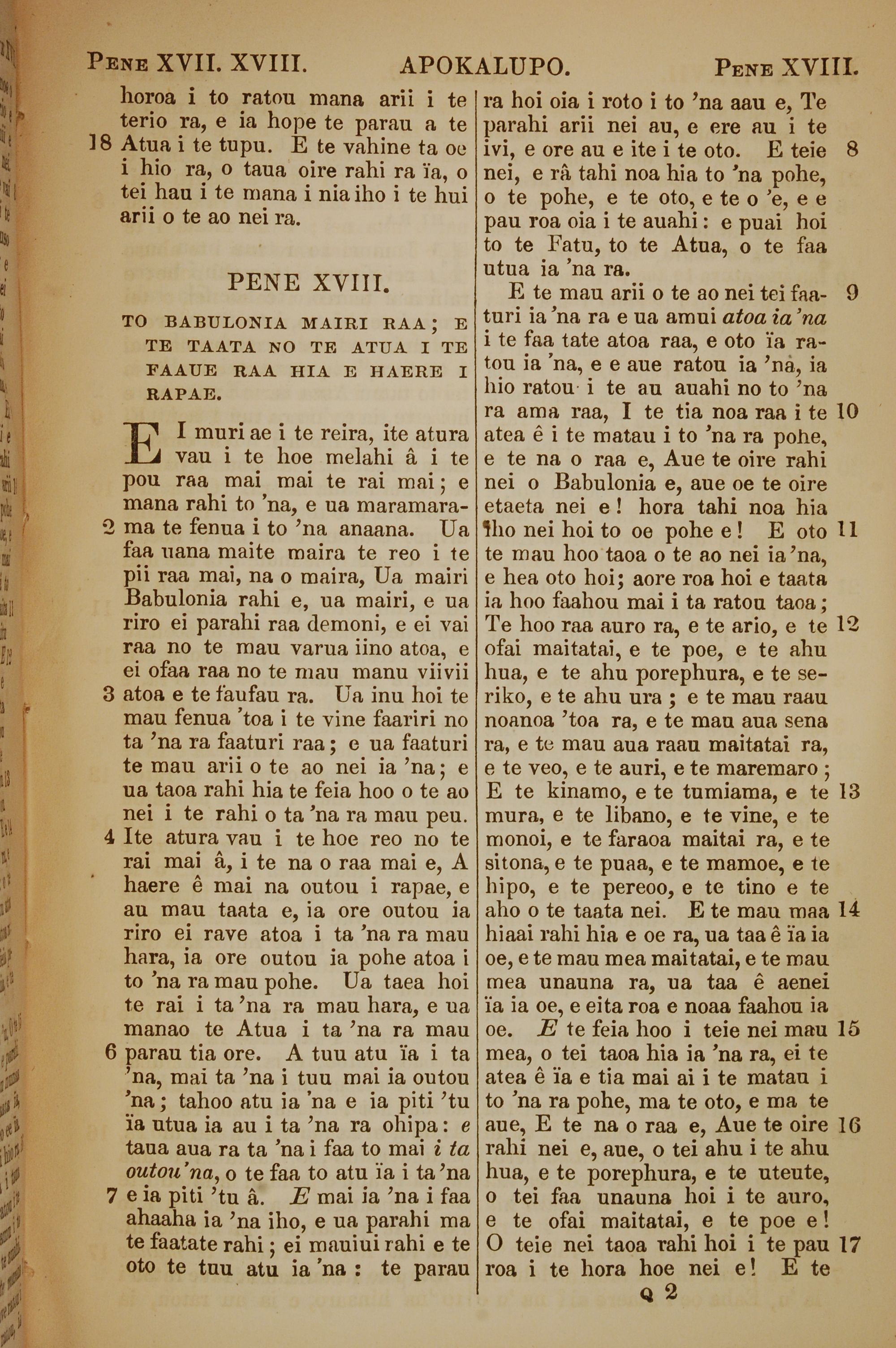 1853年塔希提语新约全书 启示录 17 章 18 节到 18 章 17 节