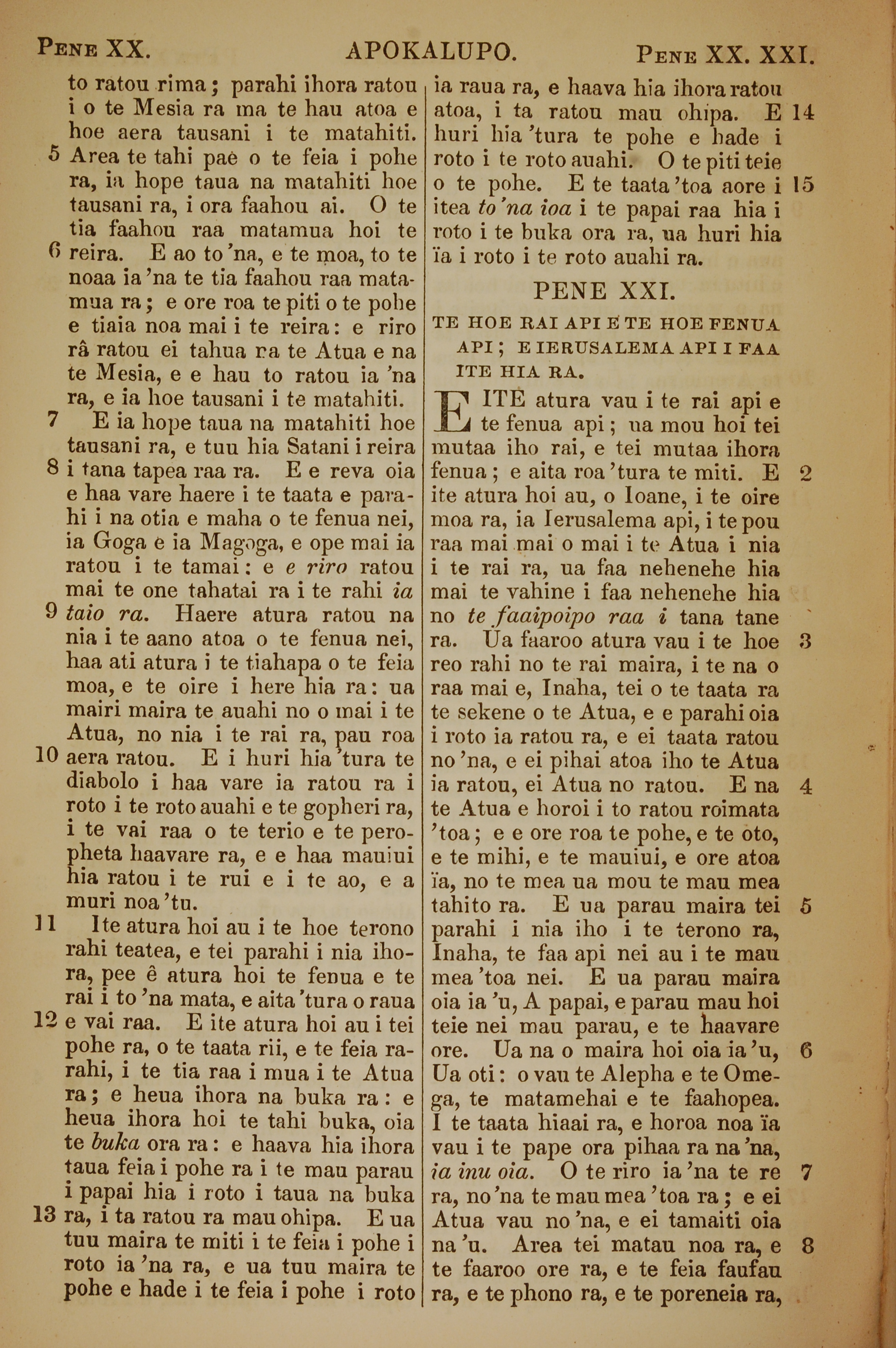 1853年塔希提语新约全书 启示录 20 章 5 节到 21 章 8 节