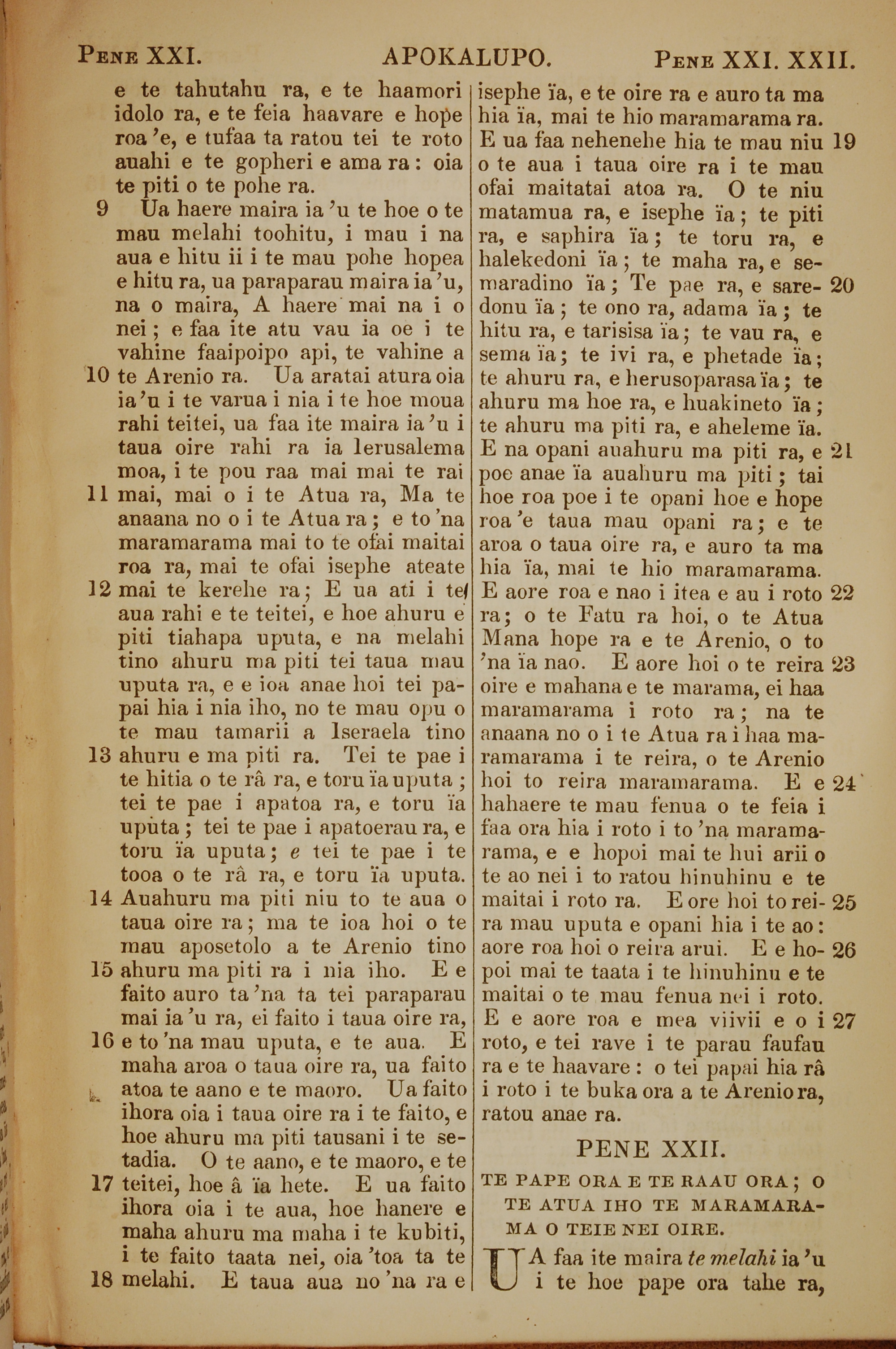 1853年塔希提语新约全书 启示录 21 章 9 节到 22 章 1 节