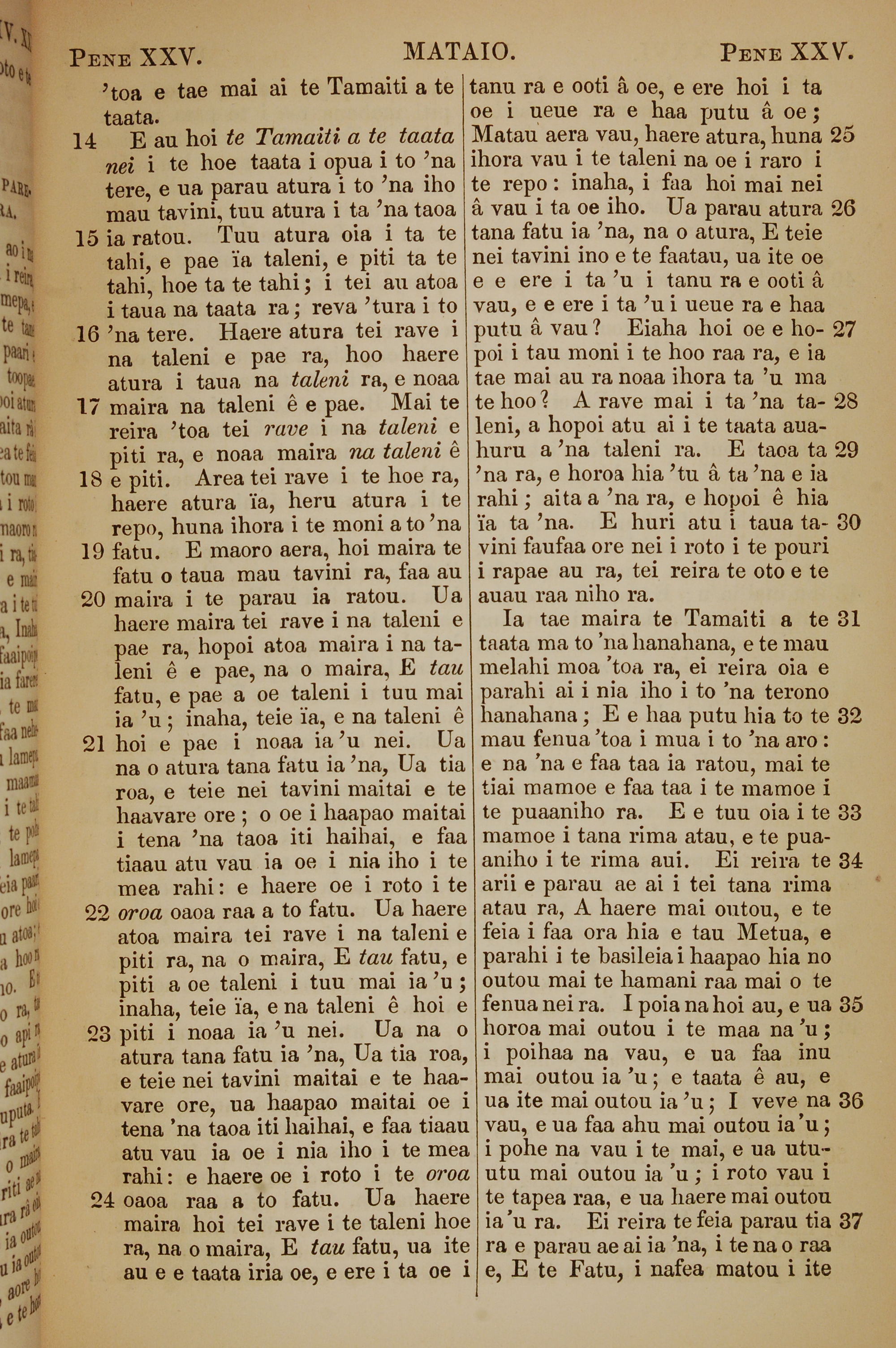 1853年塔希提语新约全书 马太福音 25 章 14 节到 25 章 37 节