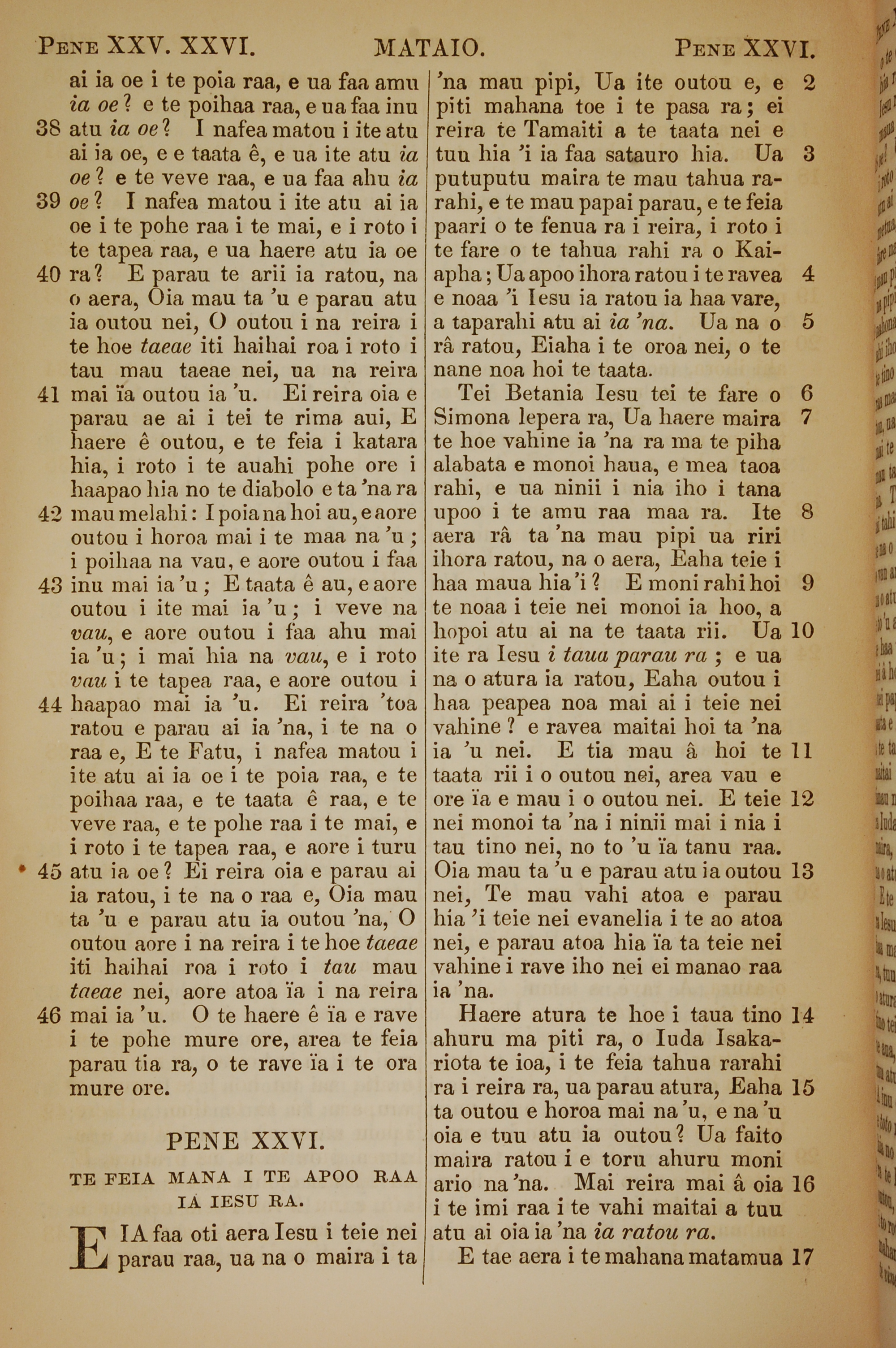 1853年塔希提语新约全书 马太福音 25 章 38 节到 26 章 17 节