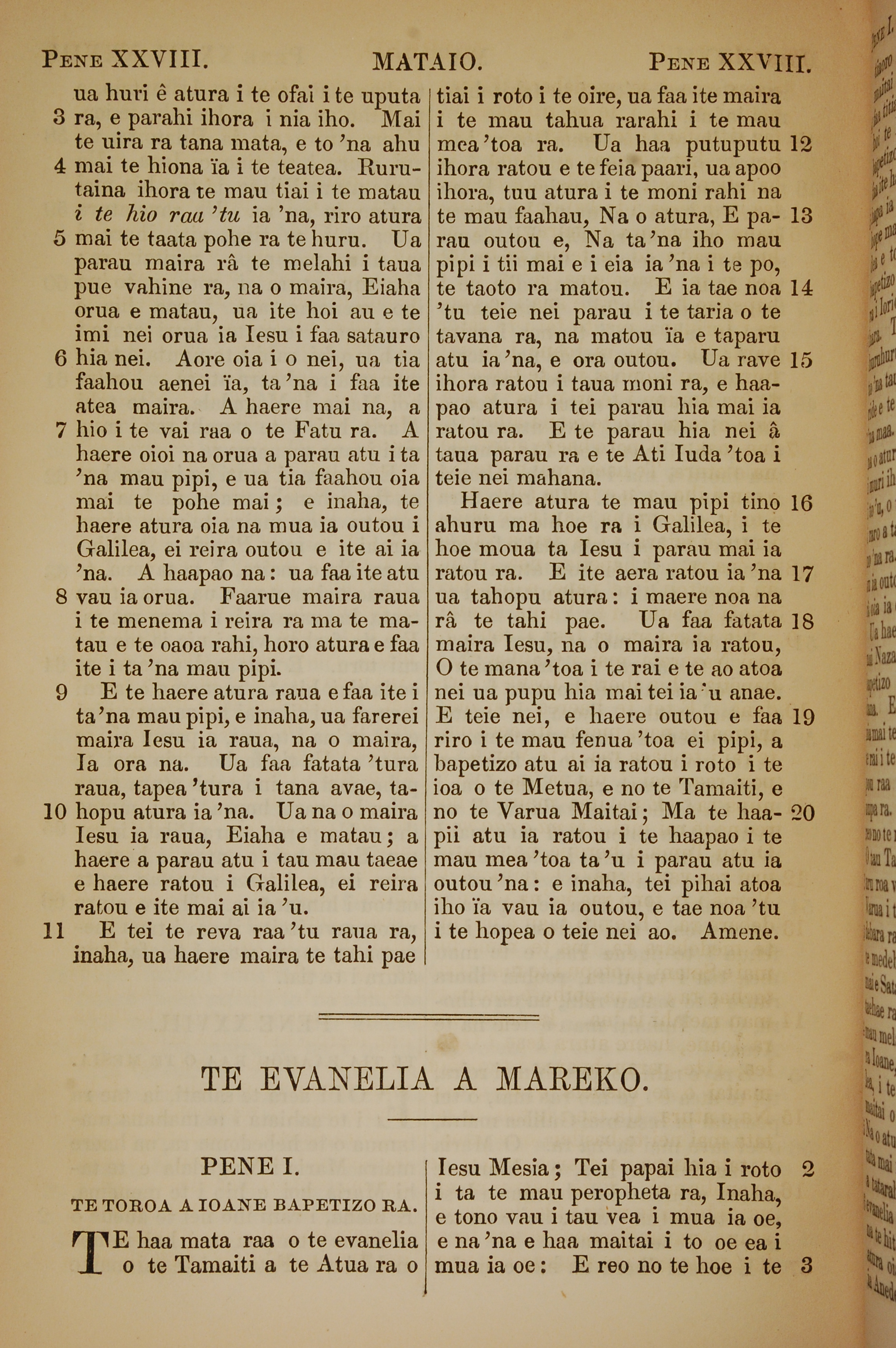 1853年塔希提语新约全书 马太福音 28 章 3 节到 28 章 20 节