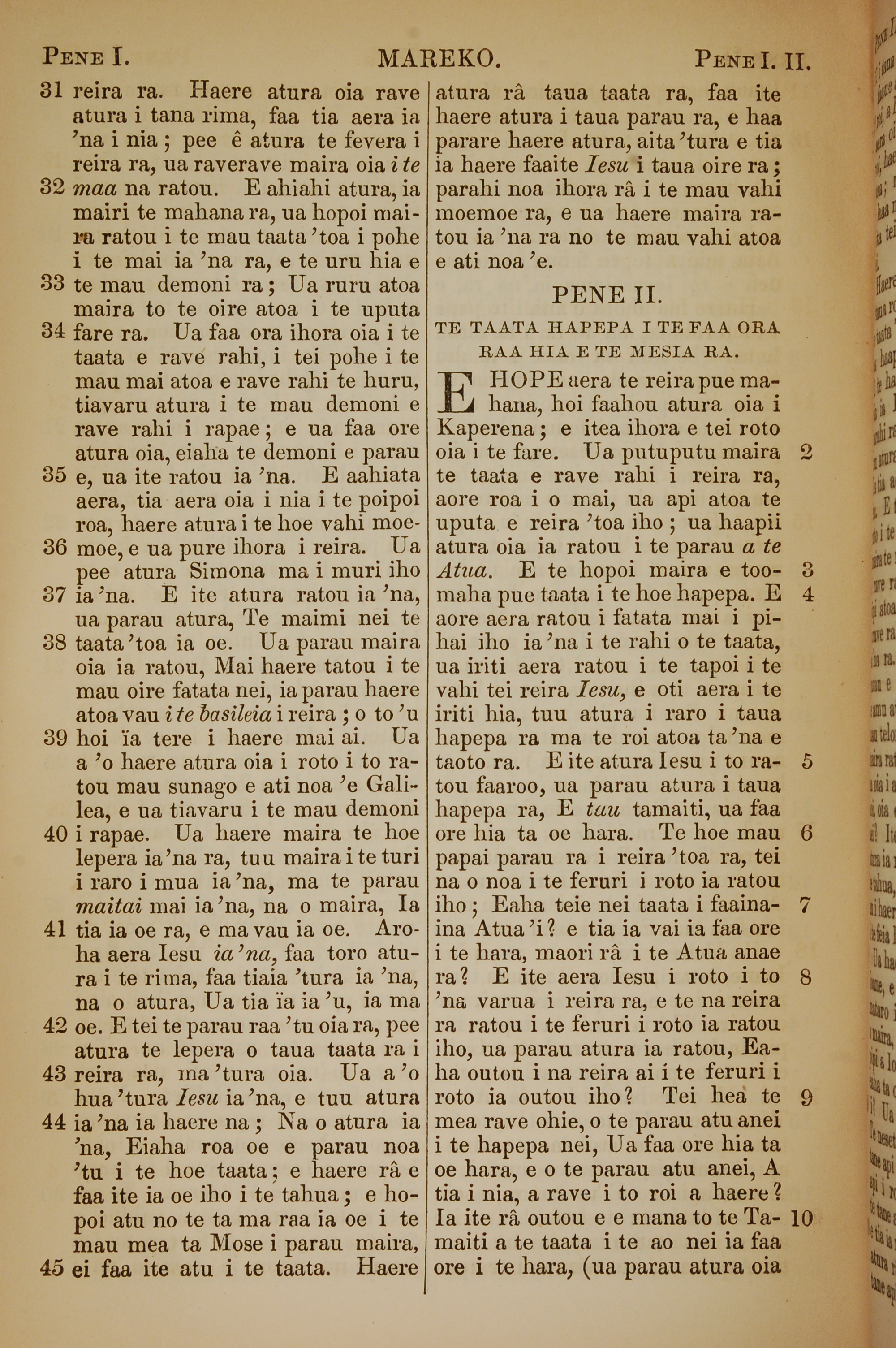 1853年塔希提语新约全书 马可福音 1 章 31 节到 2 章 10 节