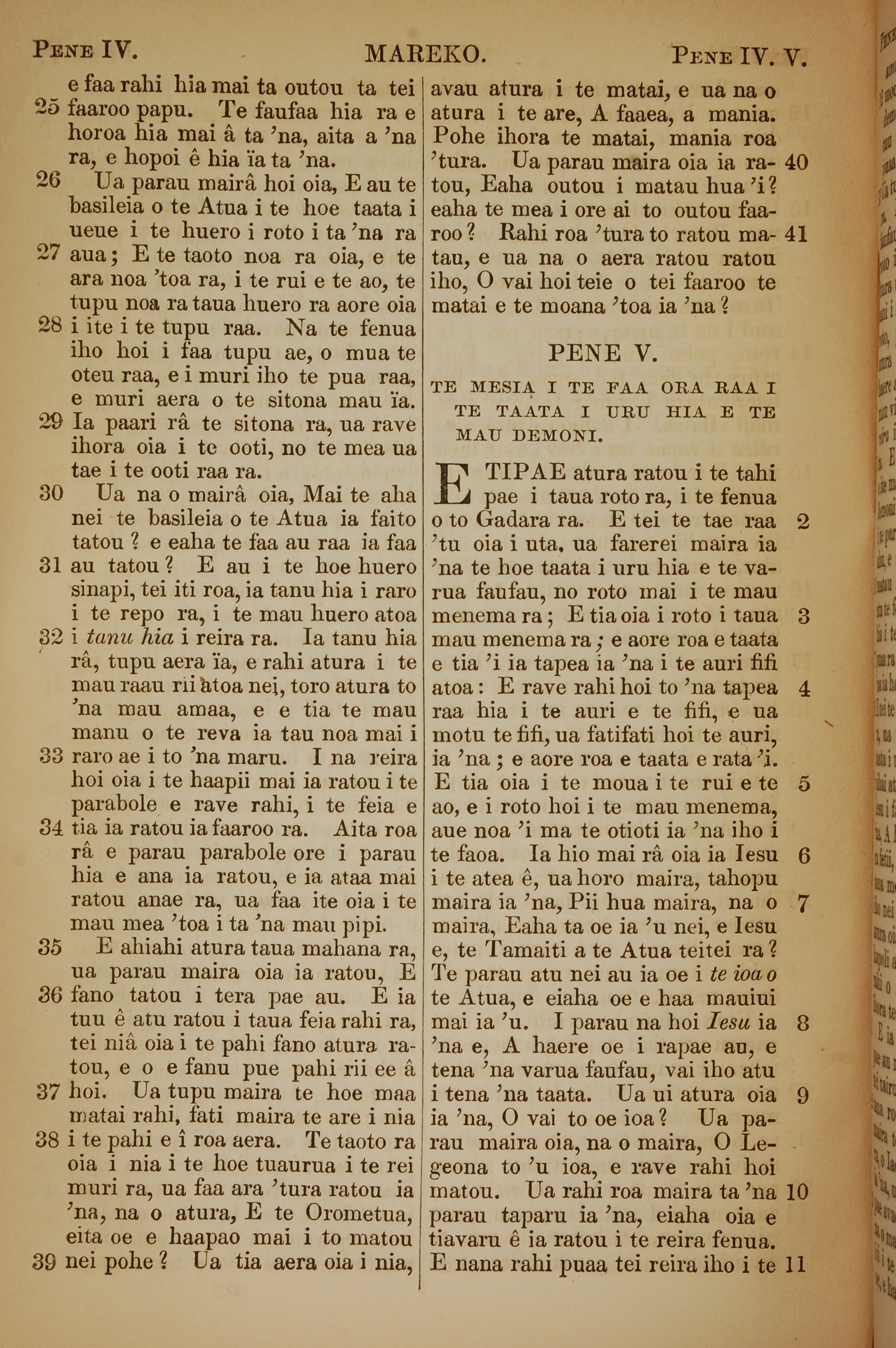 1853年塔希提语新约全书 马可福音 4 章 25 节到 5 章 11 节
