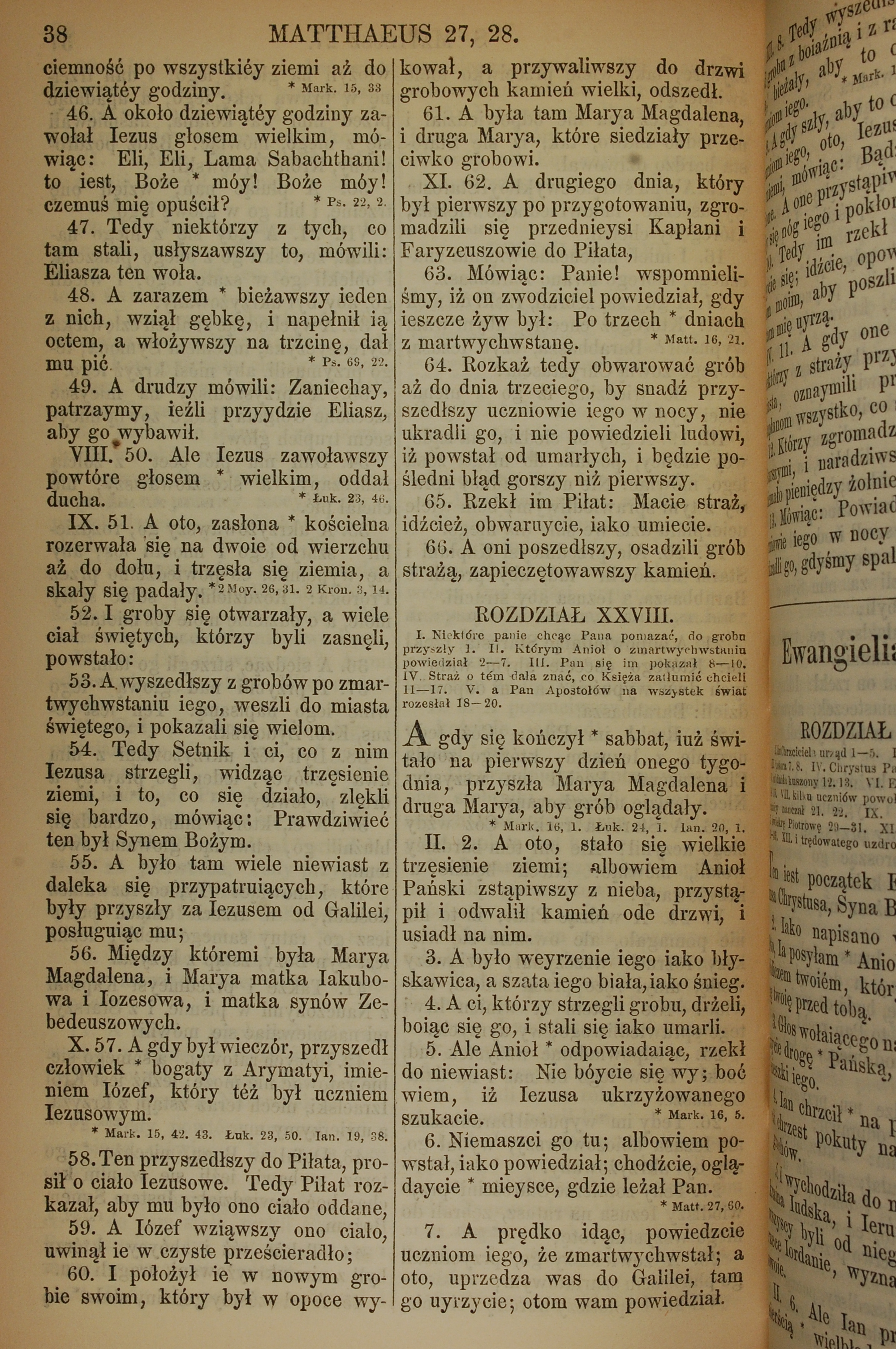 1857年波兰文新旧约全书 马太福音 27 章 46 节到 28 章 7 节