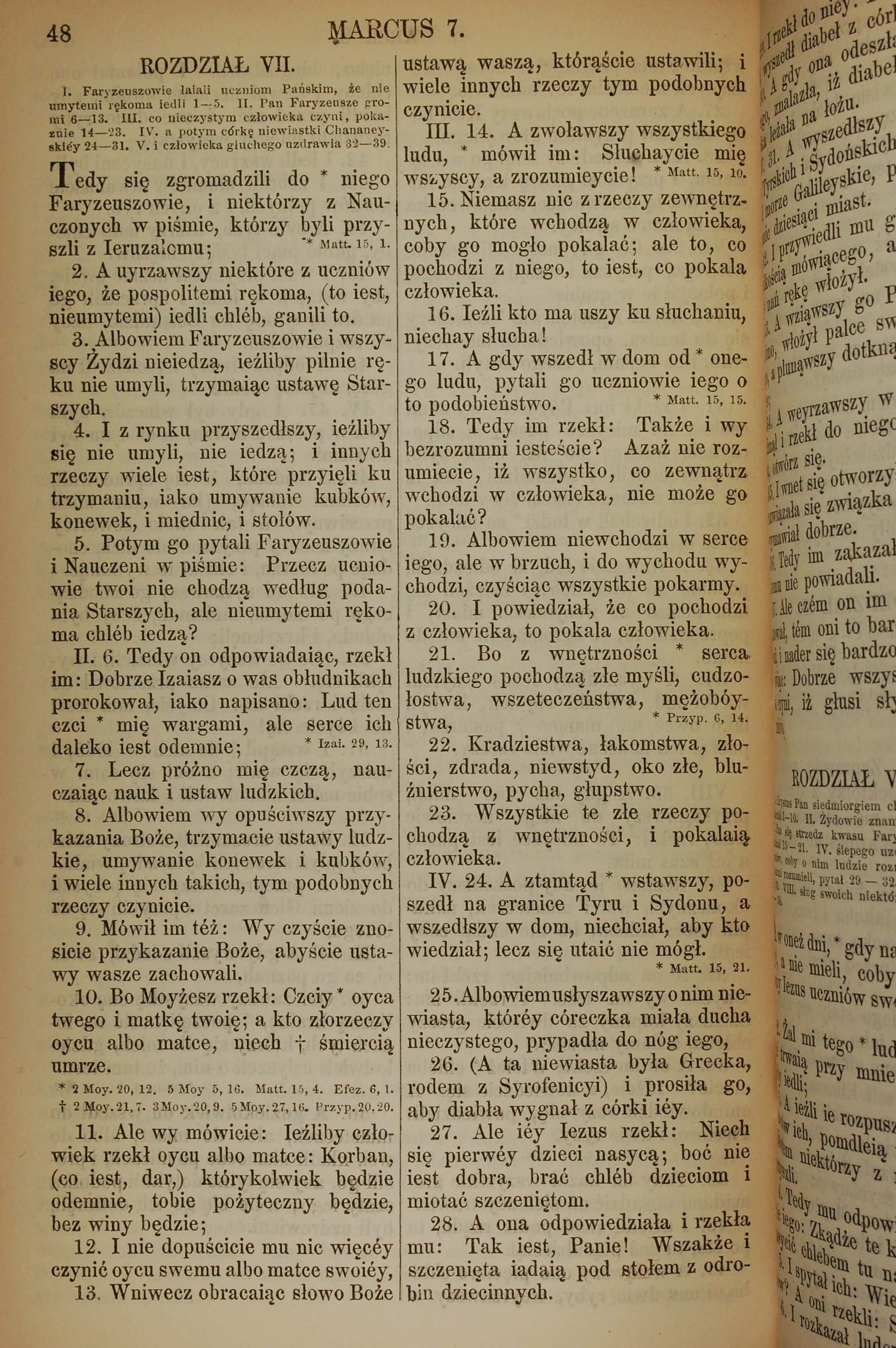 1857年波兰文新旧约全书 马可福音 7 章 1 节到 7 章 28 节
