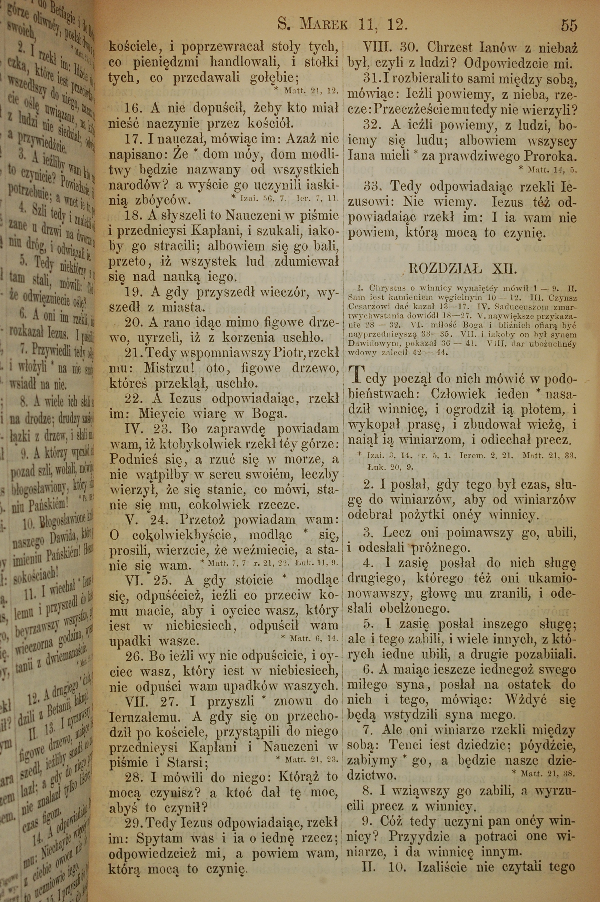 1857年波兰文新旧约全书 马可福音 11 章 16 节到 12 章 10 节