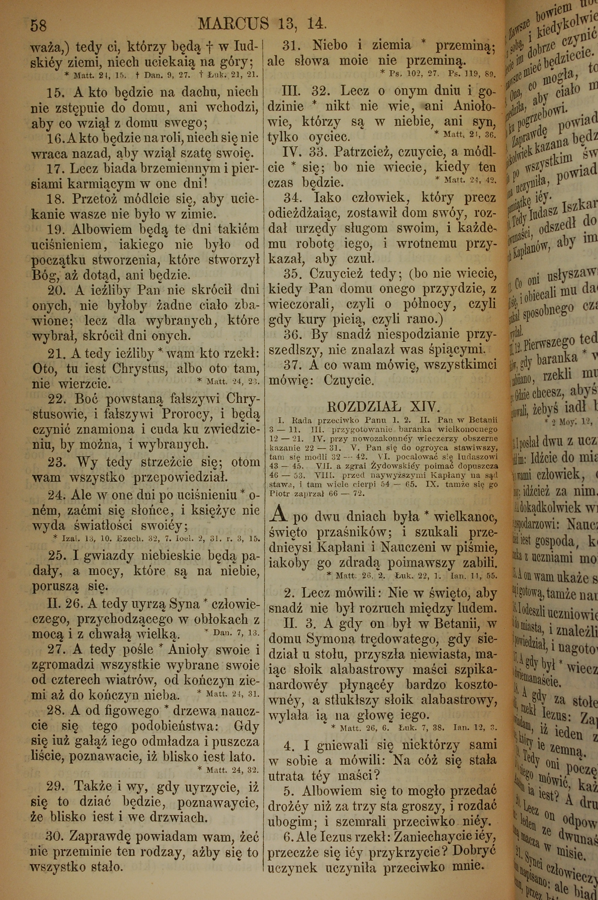 1857年波兰文新旧约全书 马可福音 13 章 15 节到 14 章 6 节