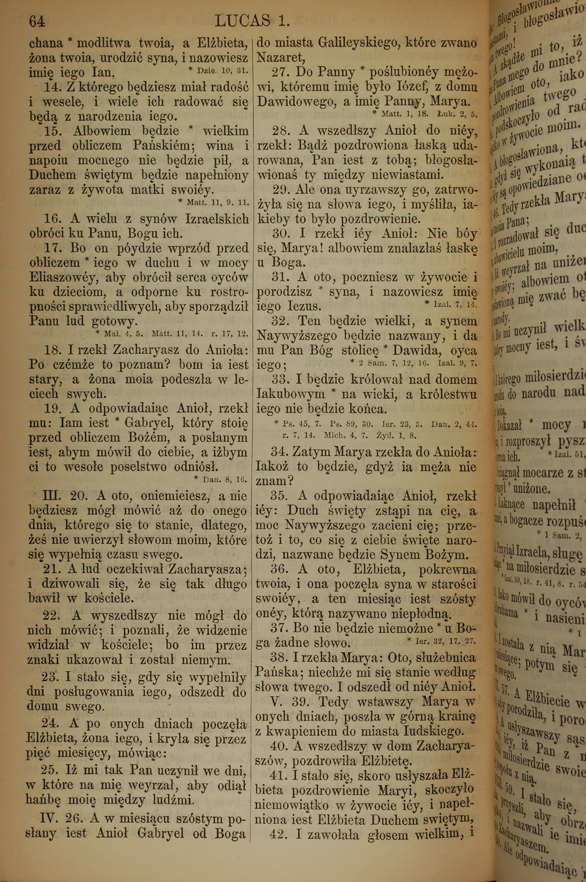 1857年波兰文新旧约全书 路加福音 1 章 14 节到 1 章 42 节