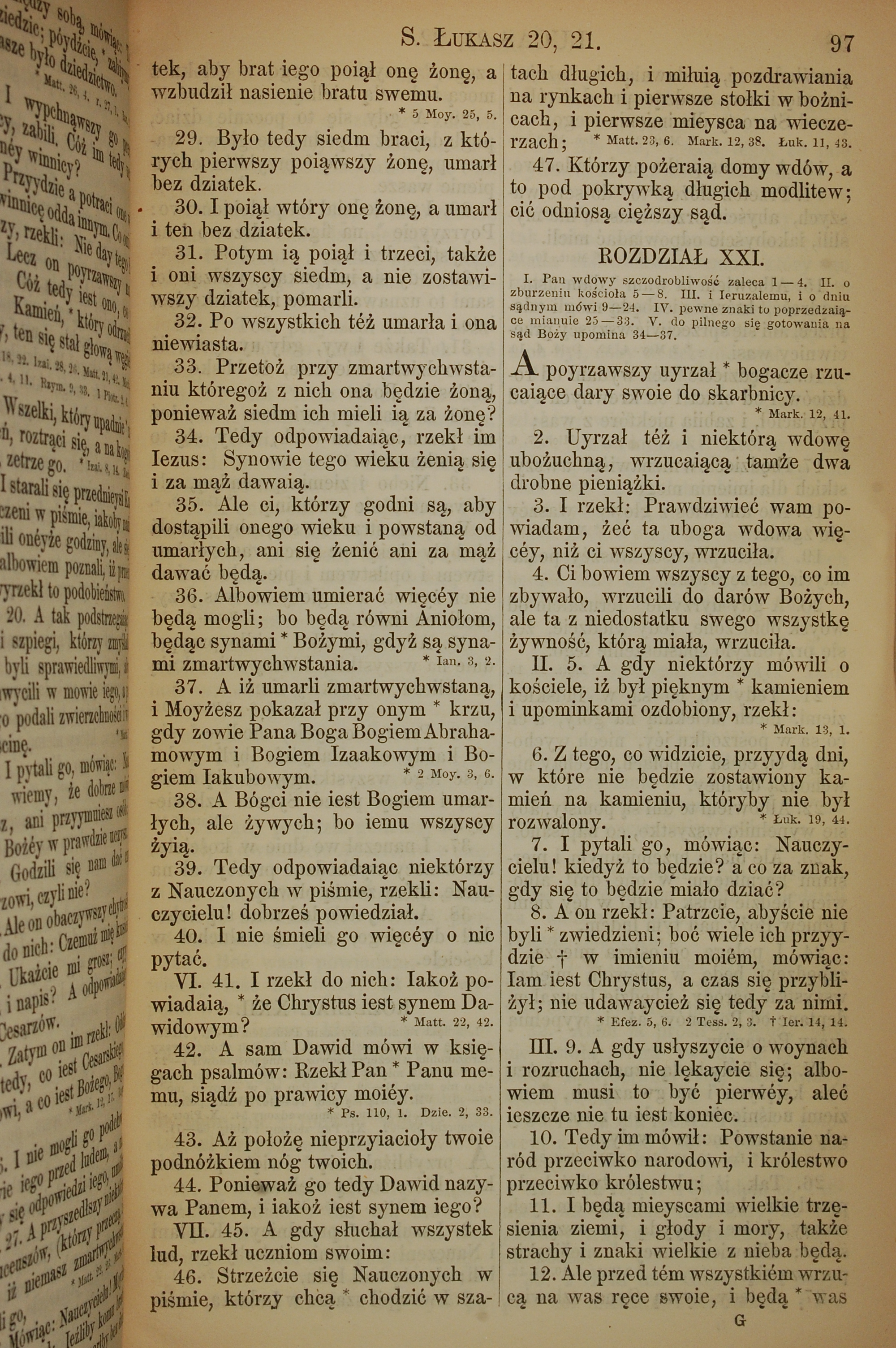 1857年波兰文新旧约全书 路加福音 20 章 29 节到 21 章 12 节