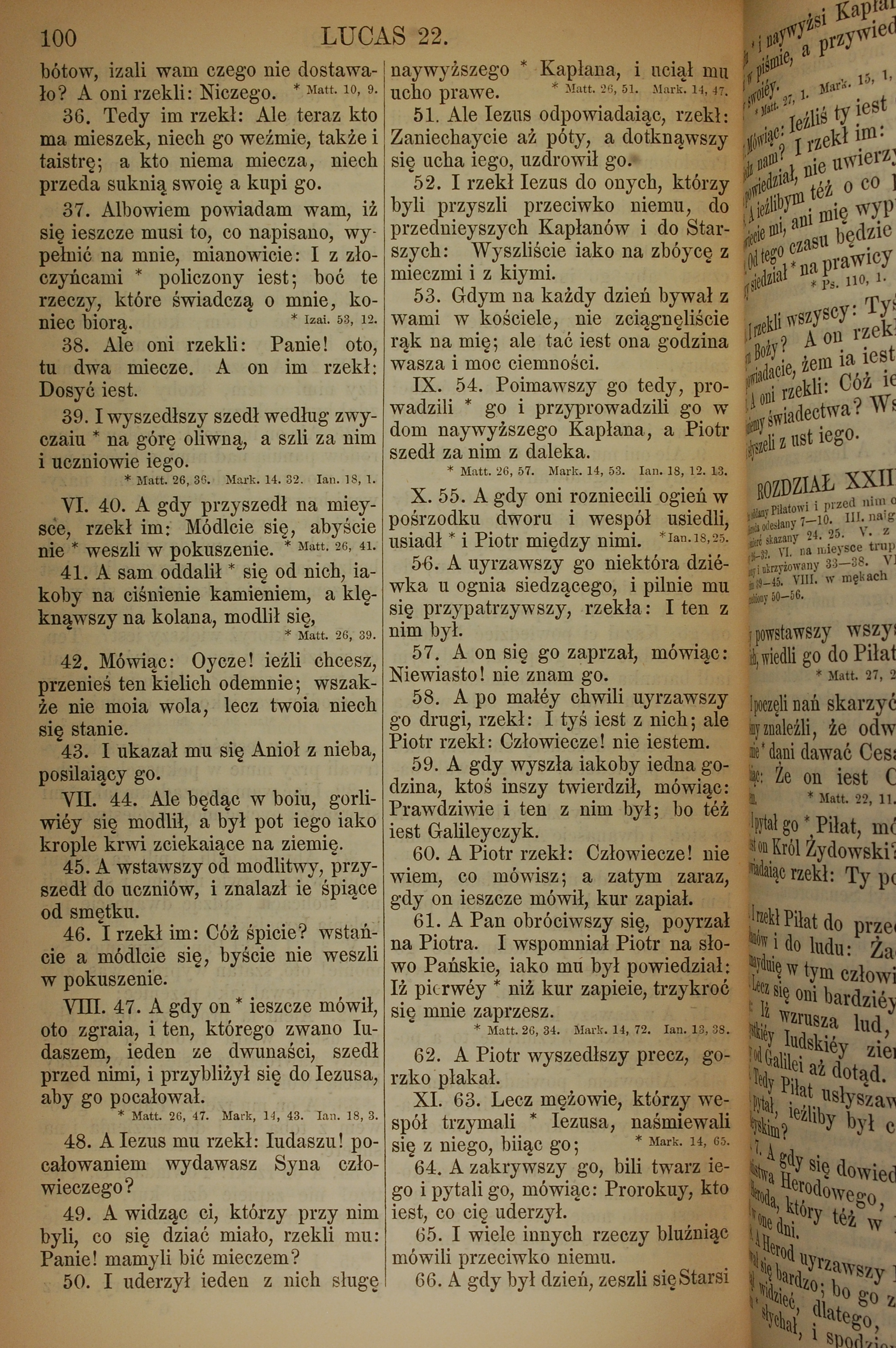 1857年波兰文新旧约全书 路加福音 22 章 36 节到 22 章 66 节