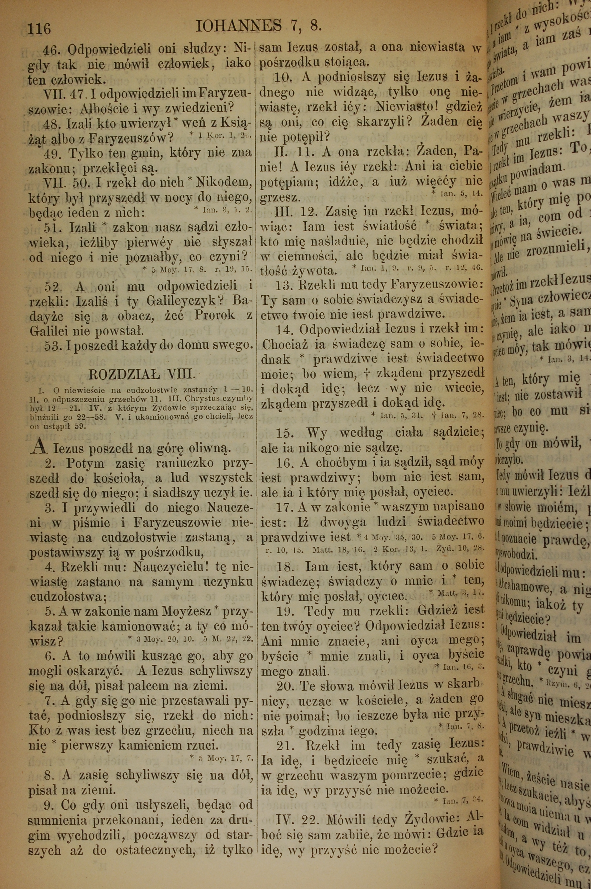 1857年波兰文新旧约全书 约翰福音 7 章 46 节到 8 章 22 节