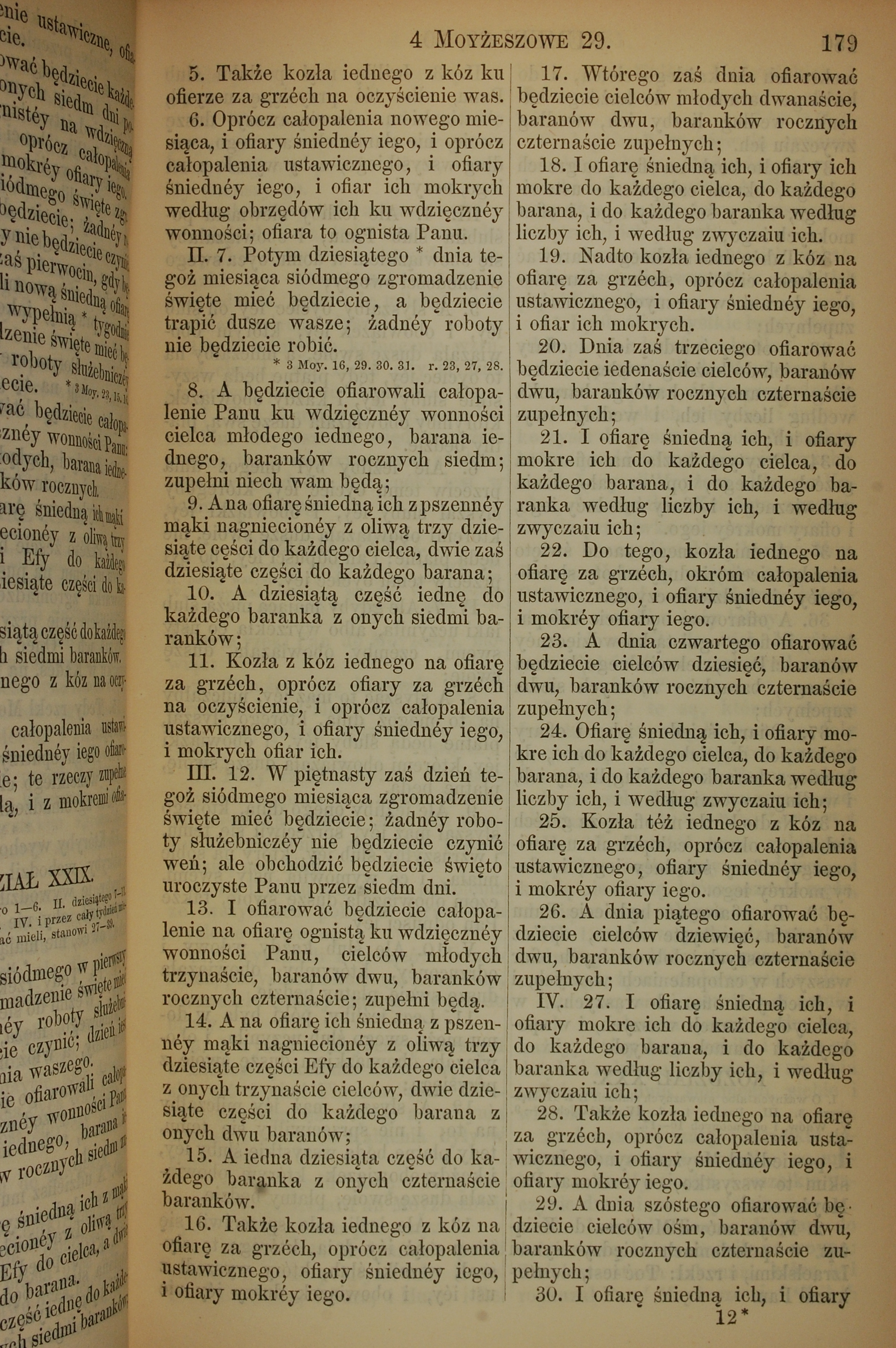 1857年波兰文新旧约全书 民数记 29 章 5 节到 29 章 30 节