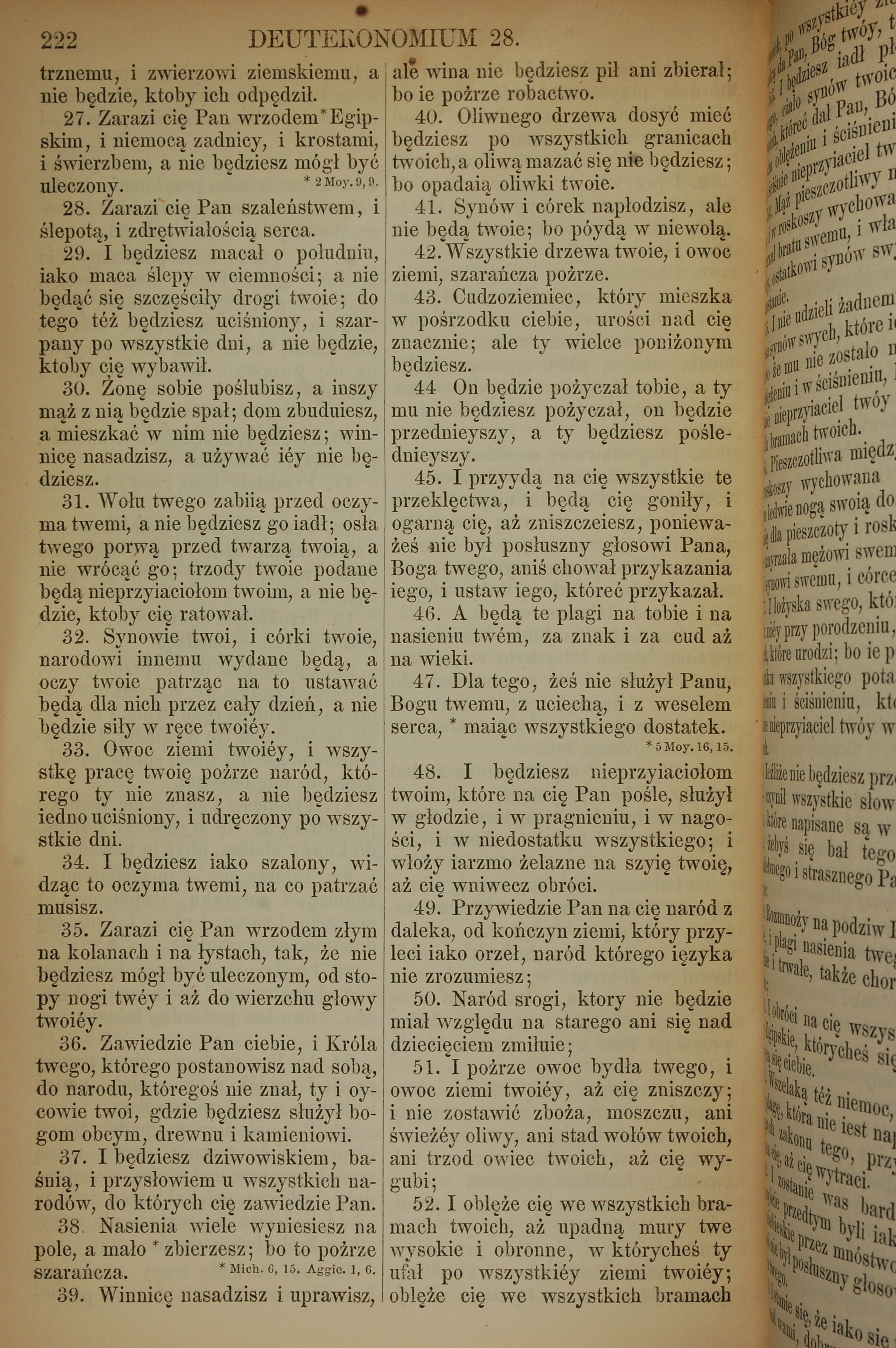 1857年波兰文新旧约全书 申命记 28 章 27 节到 28 章 52 节