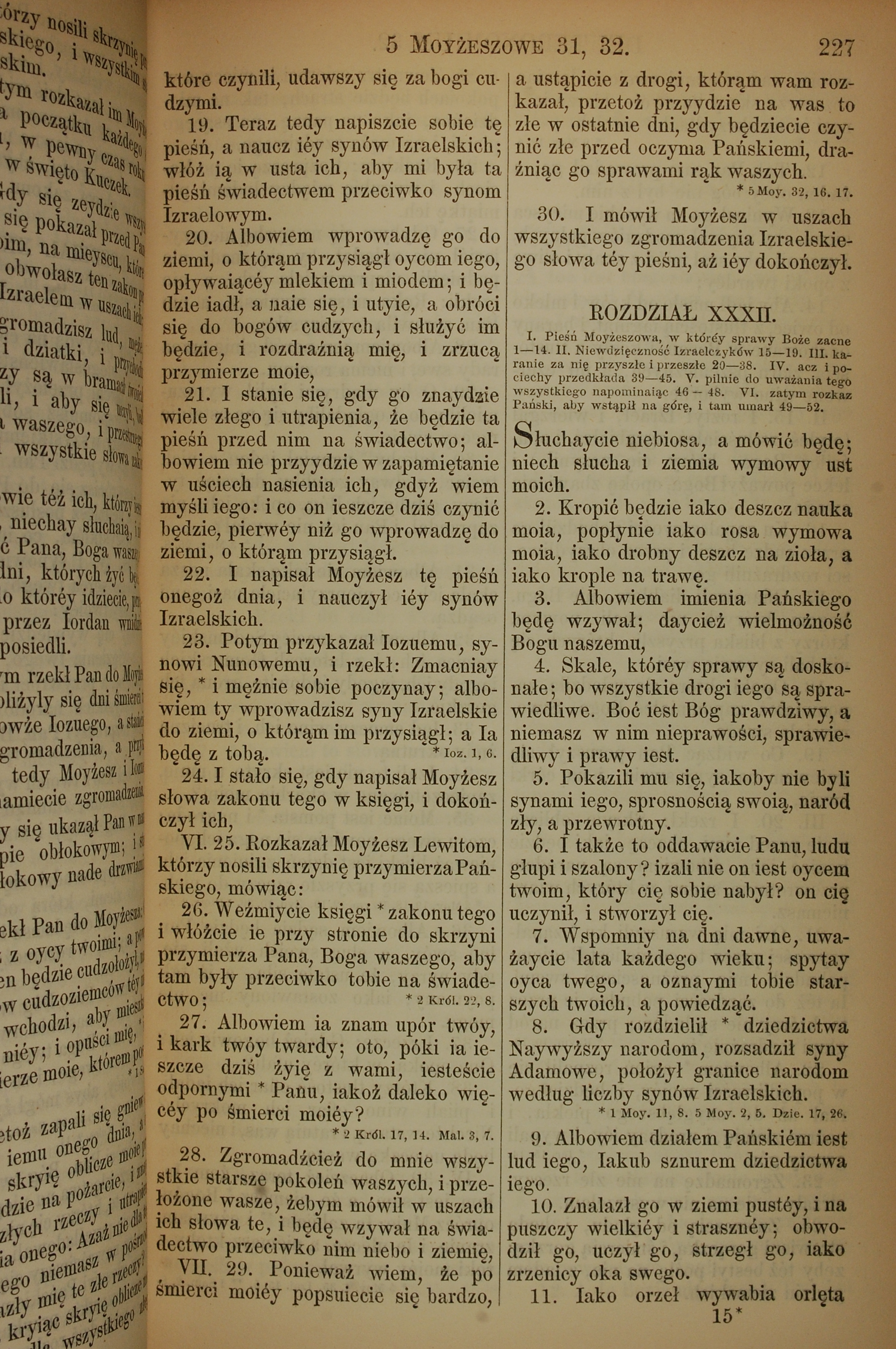 1857年波兰文新旧约全书 申命记 31 章 19 节到 32 章 11 节