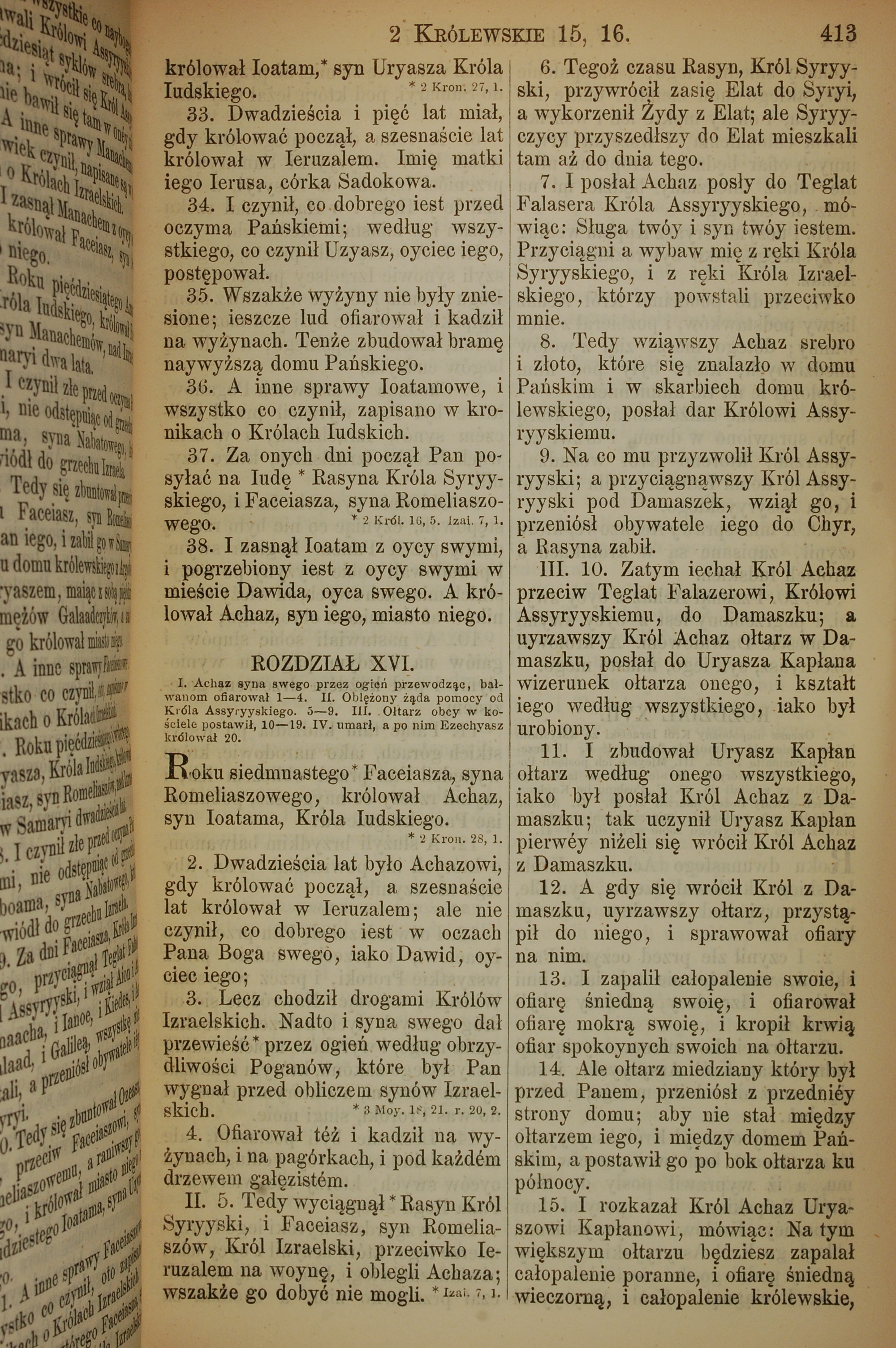 1857年波兰文新旧约全书 列王纪下 15 章 33 节到 16 章 15 节