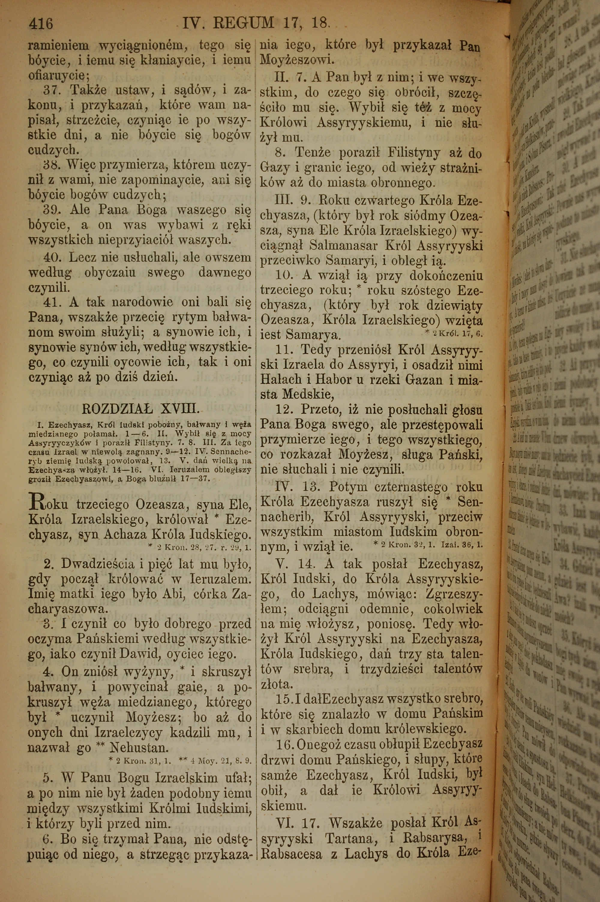 1857年波兰文新旧约全书 列王纪下 17 章 37 节到 18 章 17 节