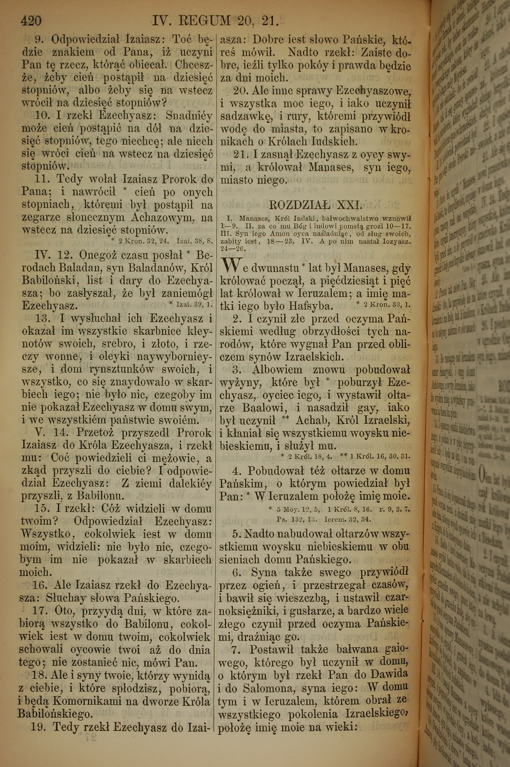 1857年波兰文新旧约全书 列王纪下 20 章 9 节到 21 章 7 节