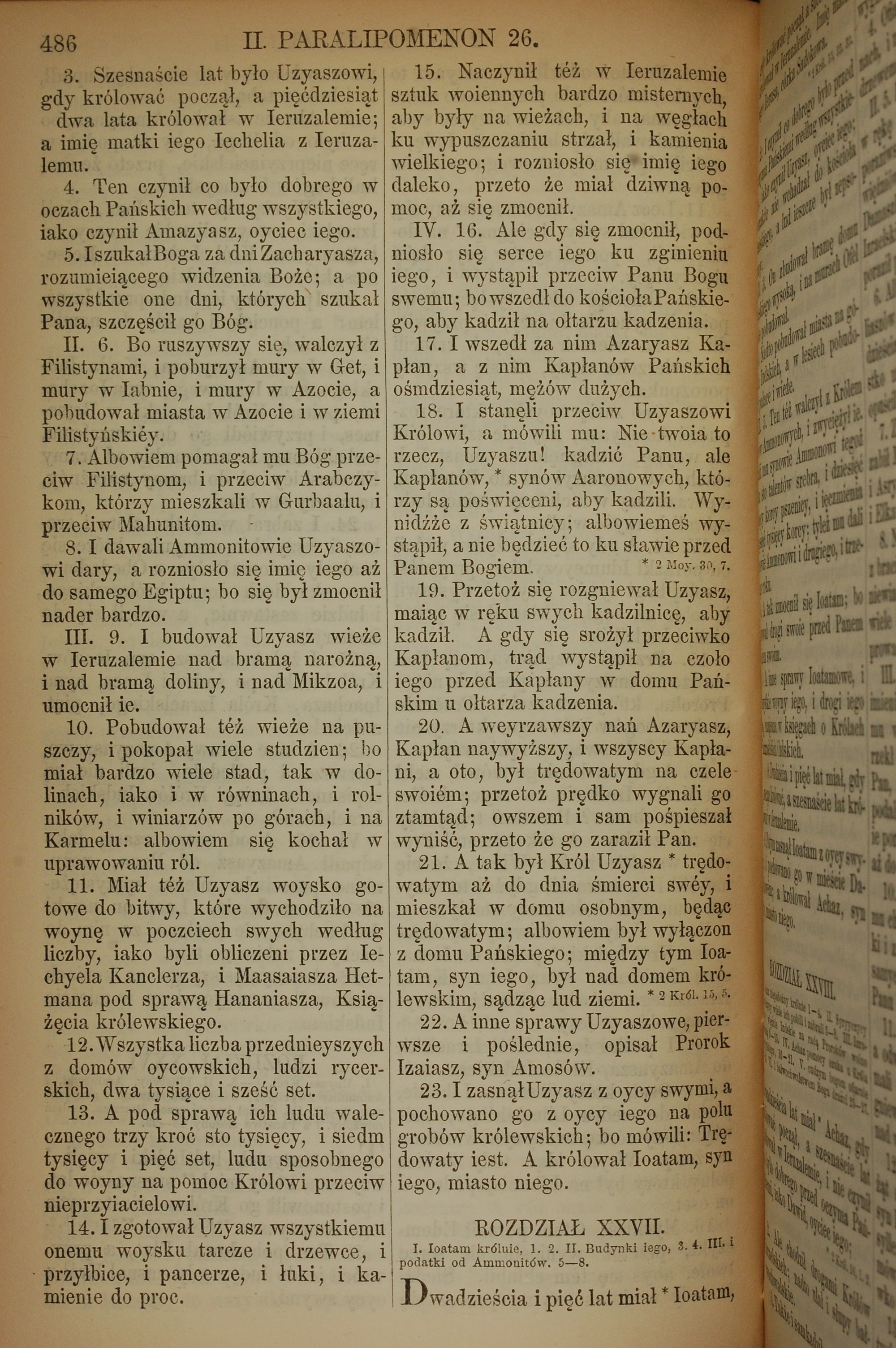 1857年波兰文新旧约全书 历代志下 26 章 3 节到 27 章 1 节