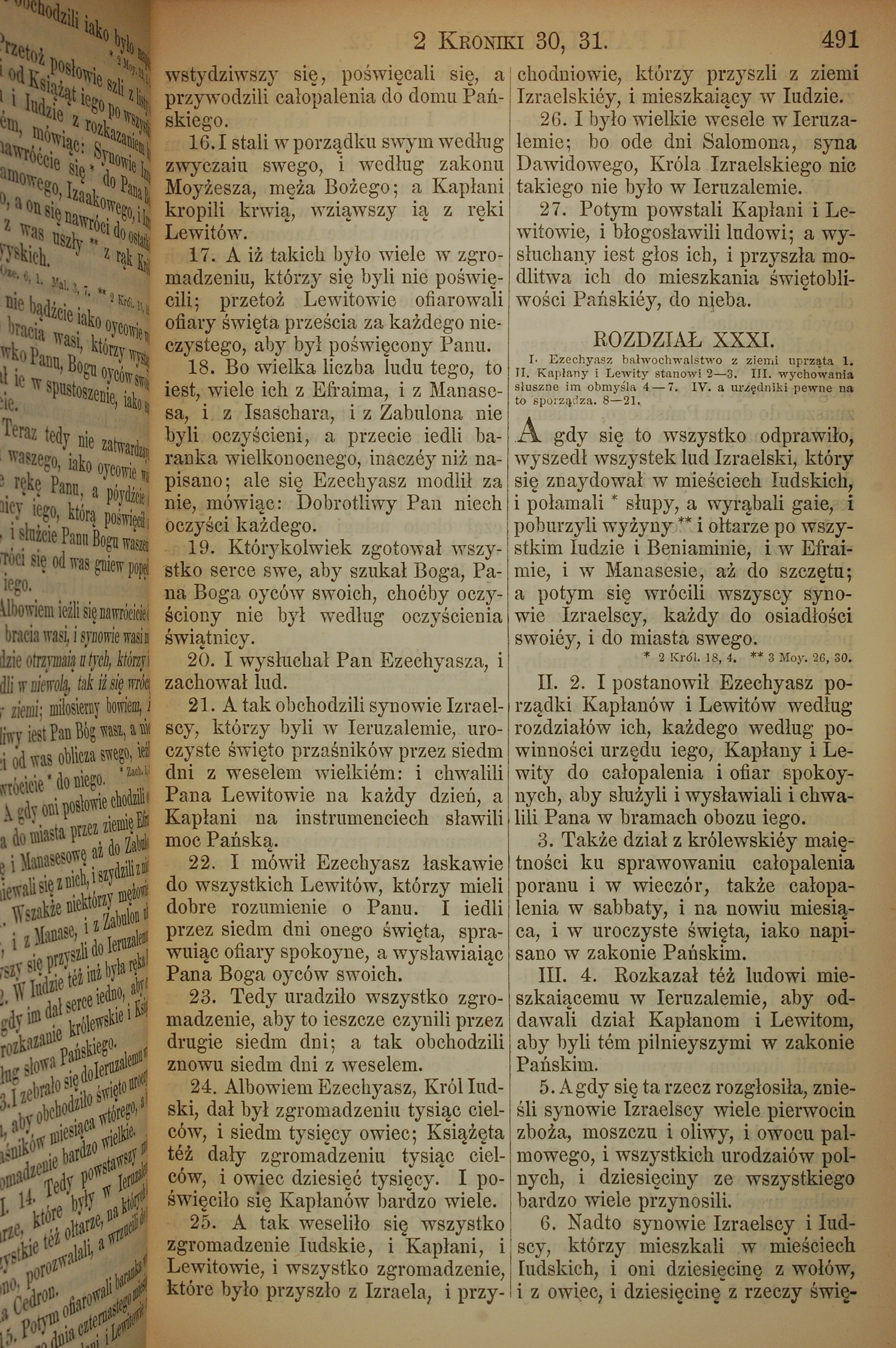 1857年波兰文新旧约全书 历代志下 30 章 16 节到 31 章 6 节