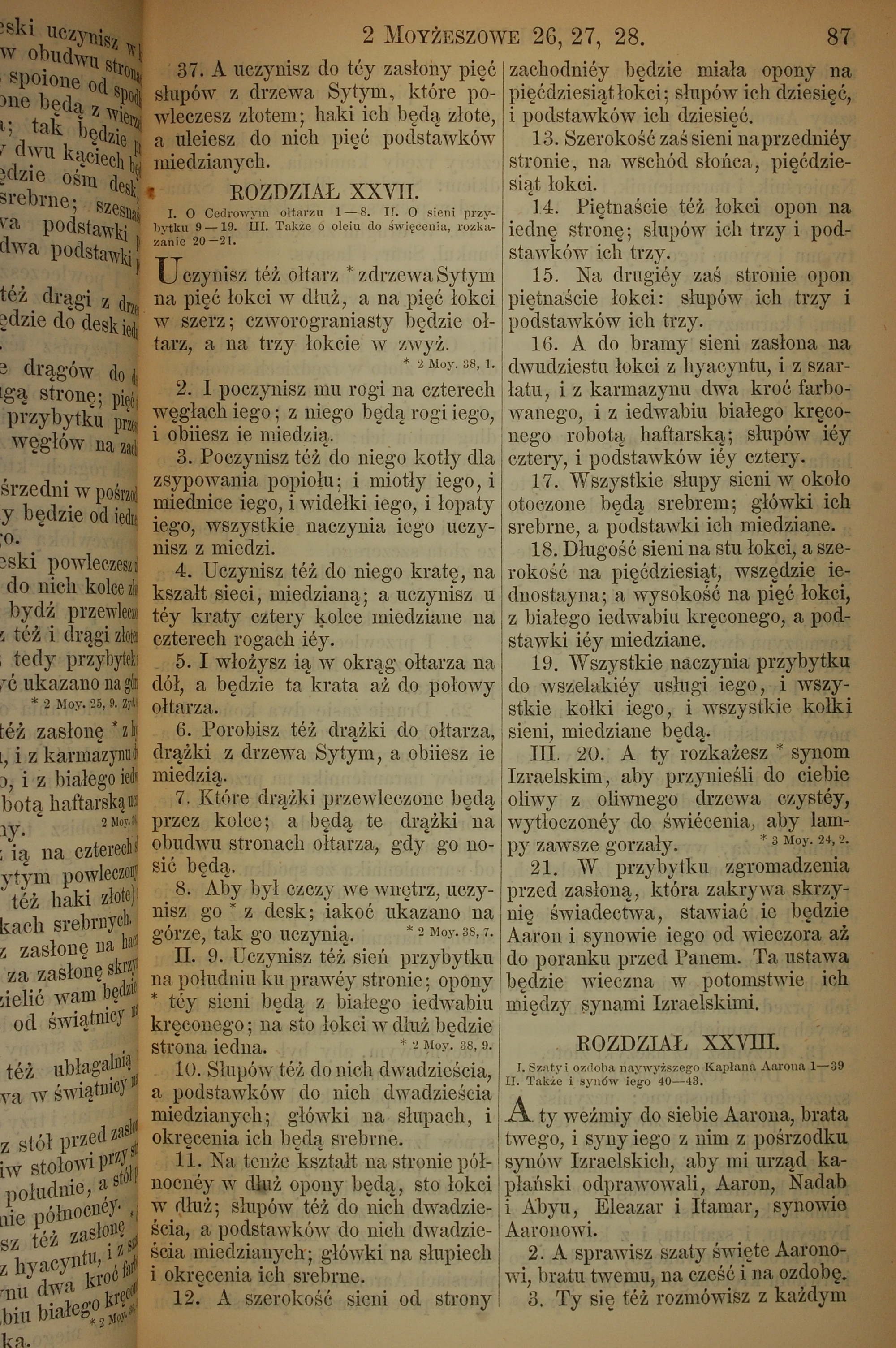 1857年波兰文新旧约全书 出埃及记 26 章 37 节到 28 章 3 节