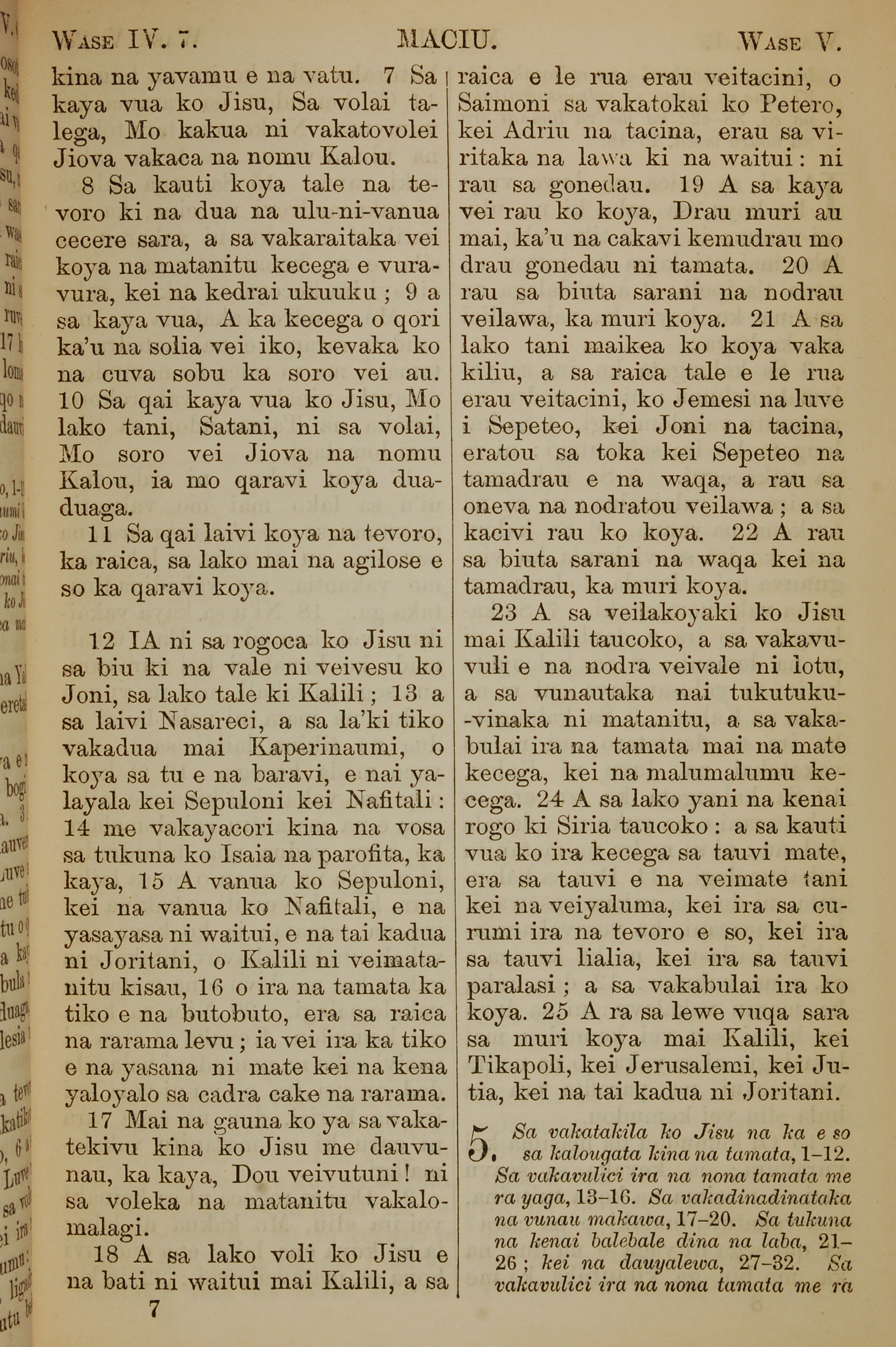 1858年斐济文新约全书 马太福音 4 章 7 节到 4 章 25 节