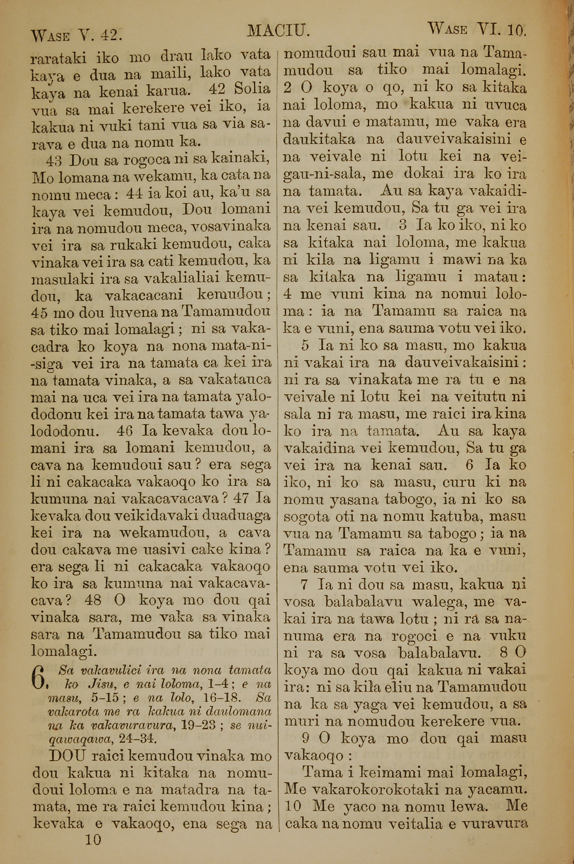 1858年斐济文新约全书 马太福音 5 章 42 节到 6 章 10 节
