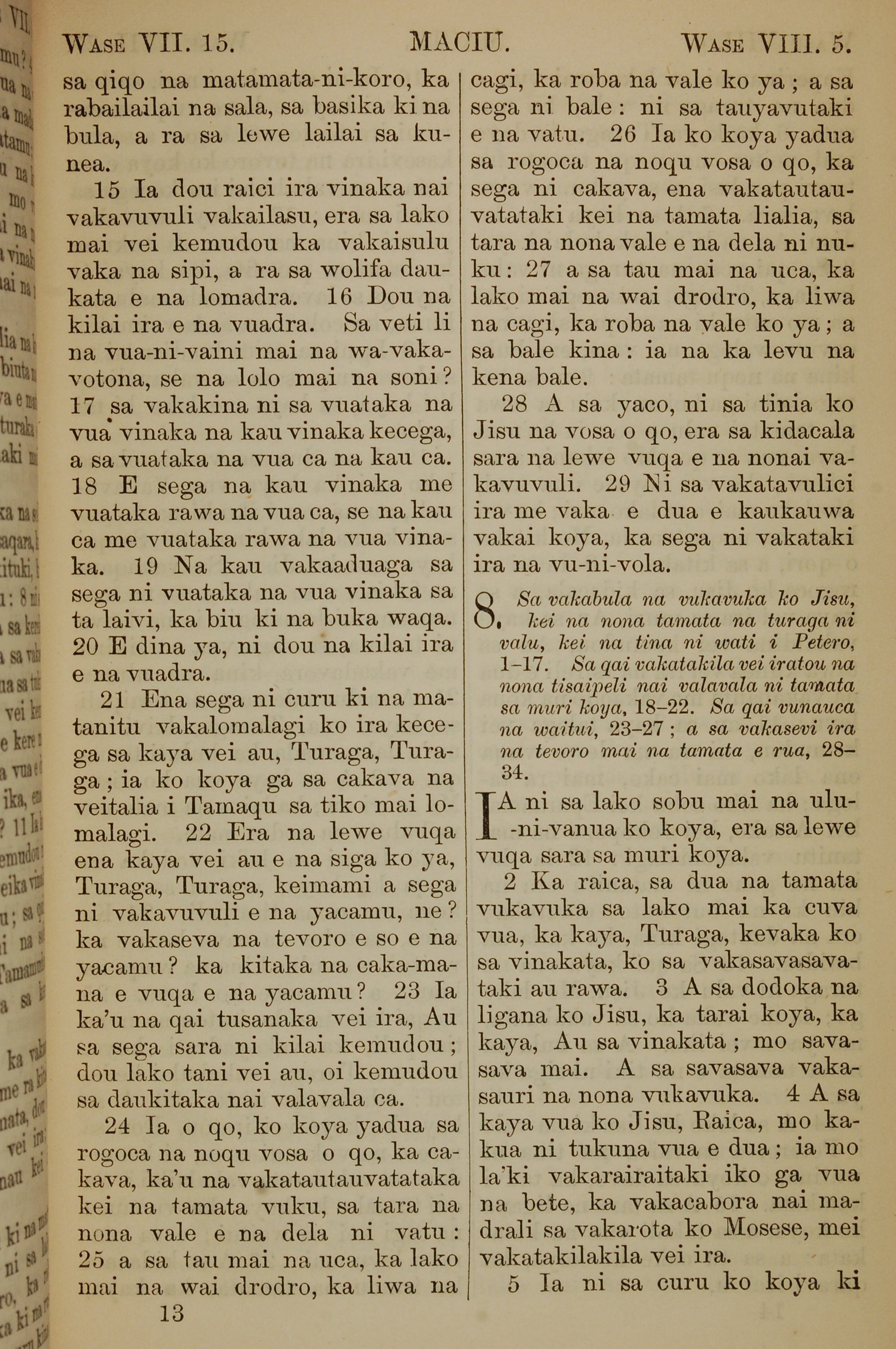 1858年斐济文新约全书 马太福音 7 章 14 节到 8 章 5 节