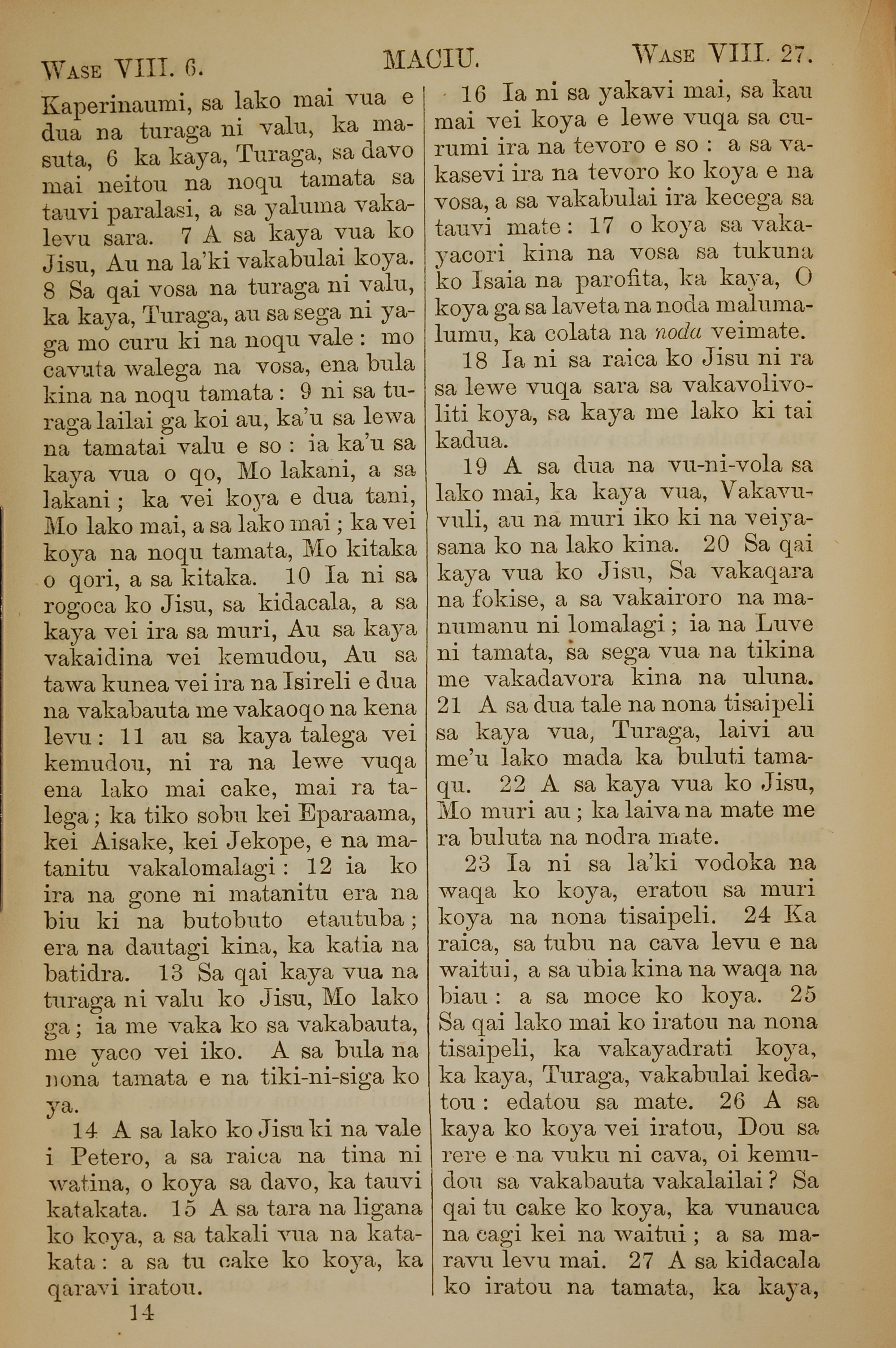 1858年斐济文新约全书 马太福音 8 章 6 节到 8 章 27 节