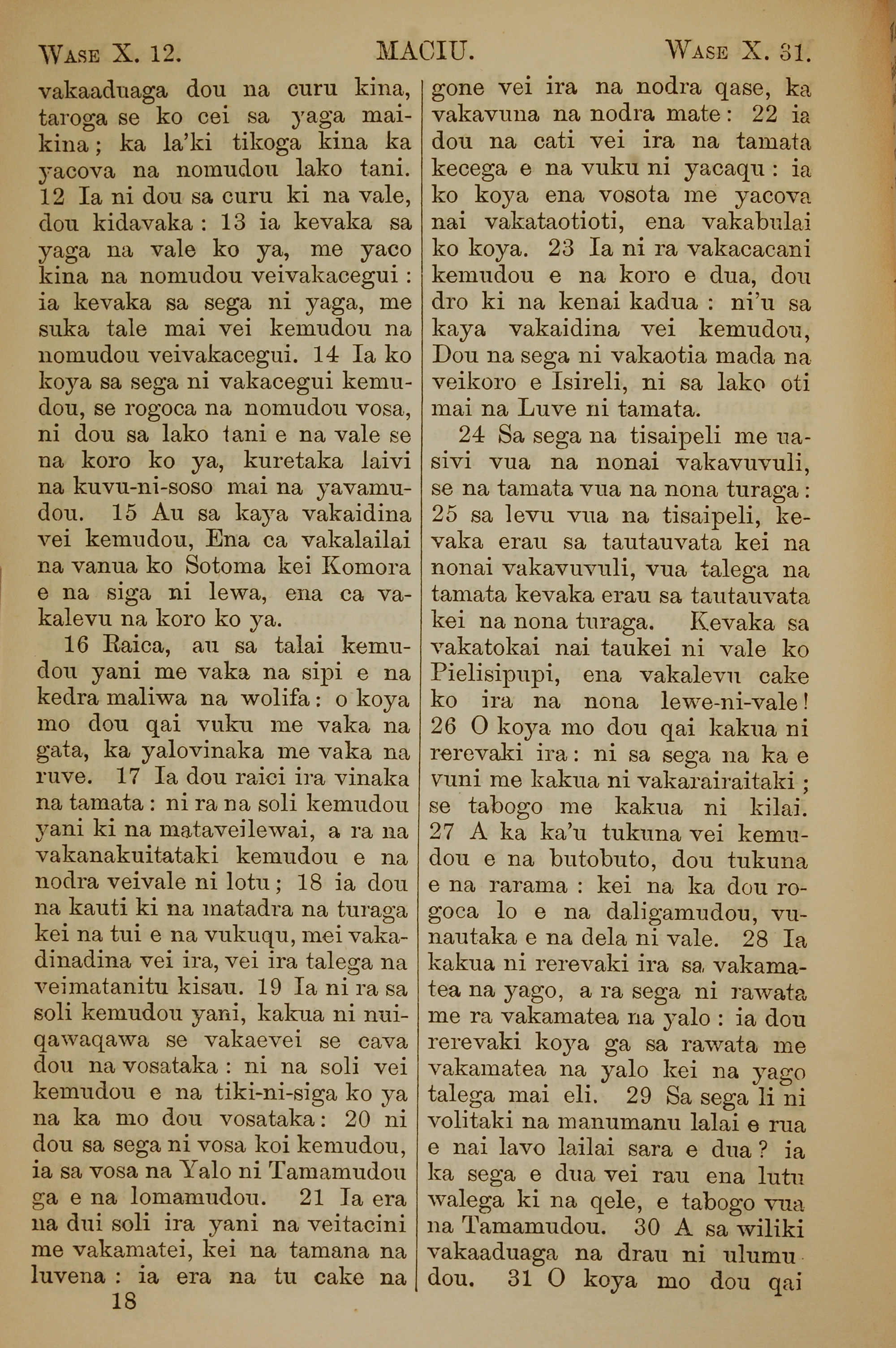 1858年斐济文新约全书 马太福音 10 章 12 节到 10 章 31 节