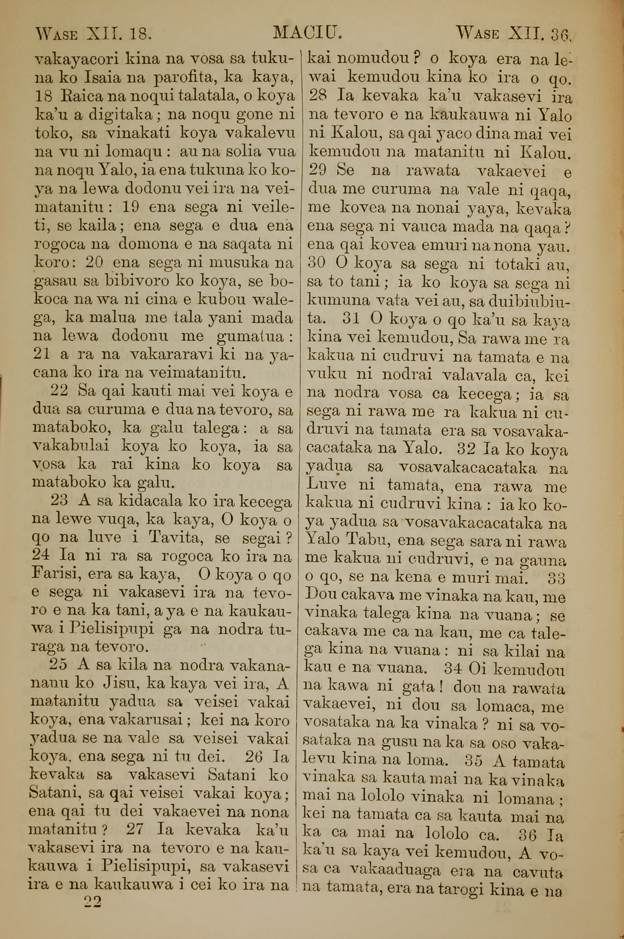 1858年斐济文新约全书 马太福音 12 章 18 节到 12 章 36 节
