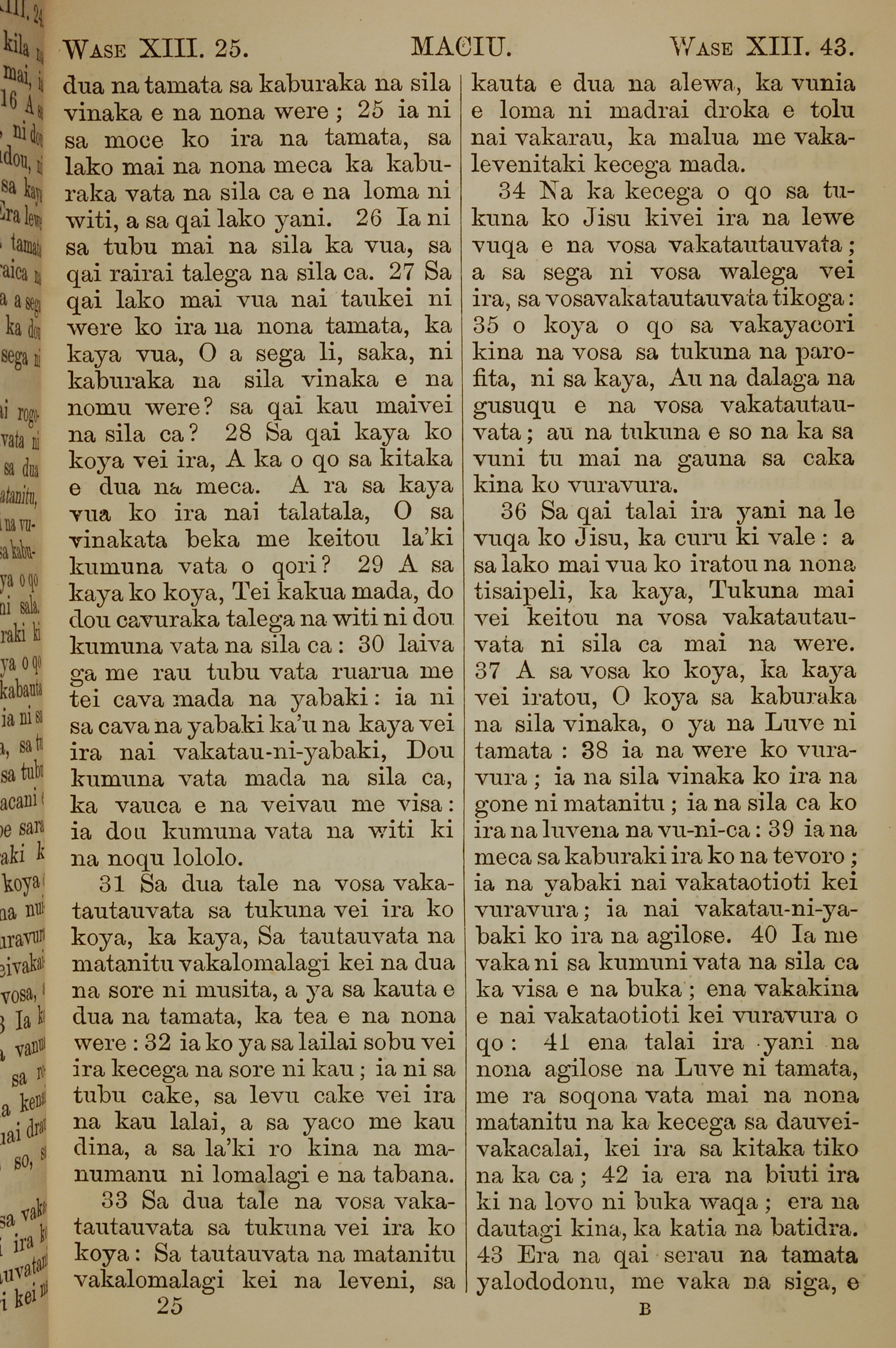 1858年斐济文新约全书 马太福音 13 章 25 节到 13 章 43 节