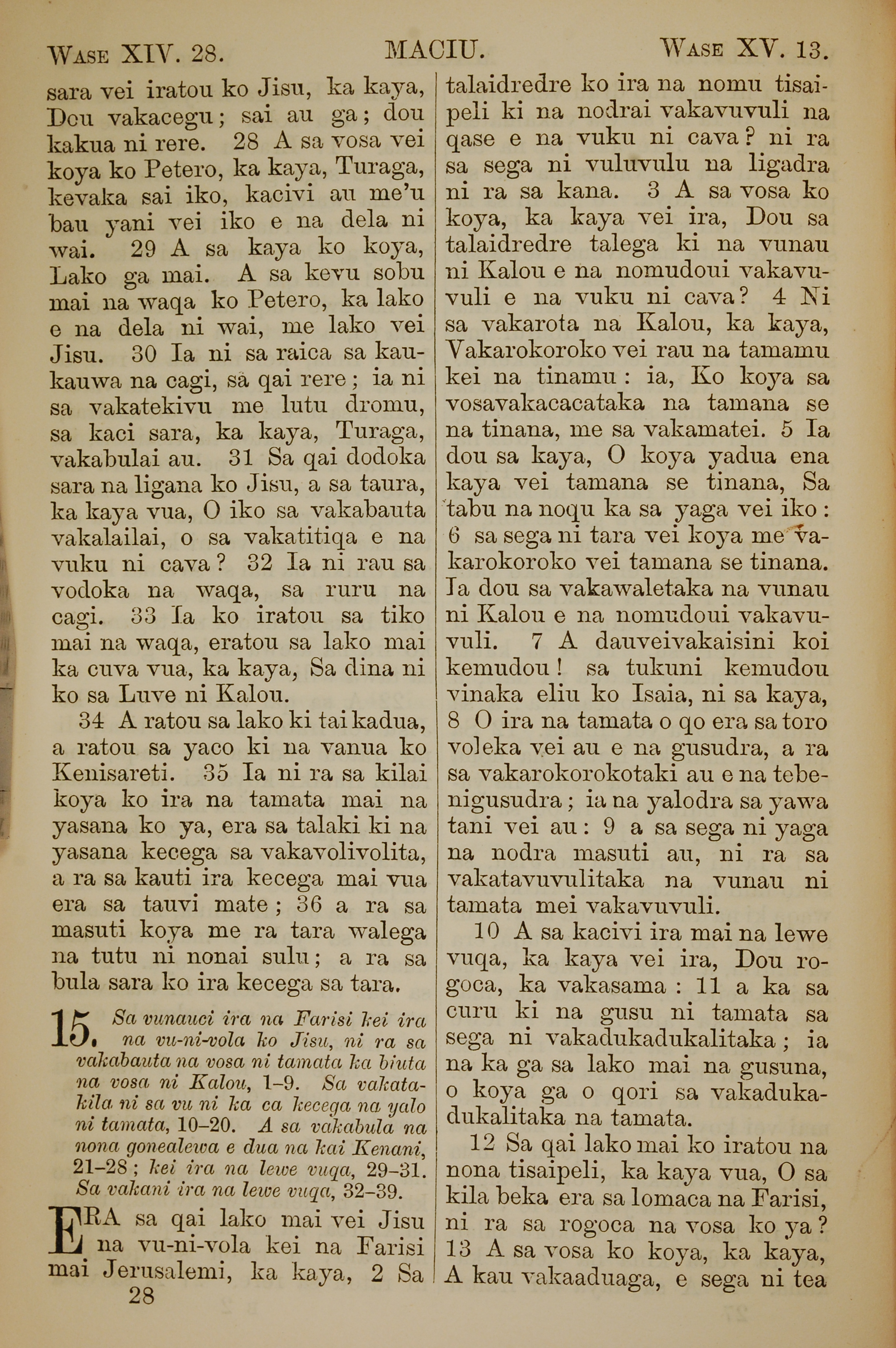 1858年斐济文新约全书 马太福音 14 章 28 节到 15 章 13 节