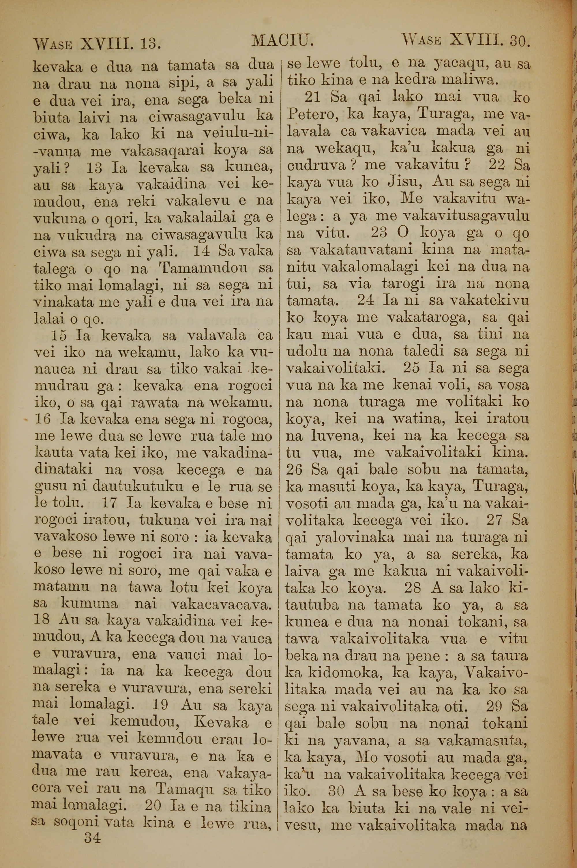 1858年斐济文新约全书 马太福音 18 章 12 节到 18 章 30 节