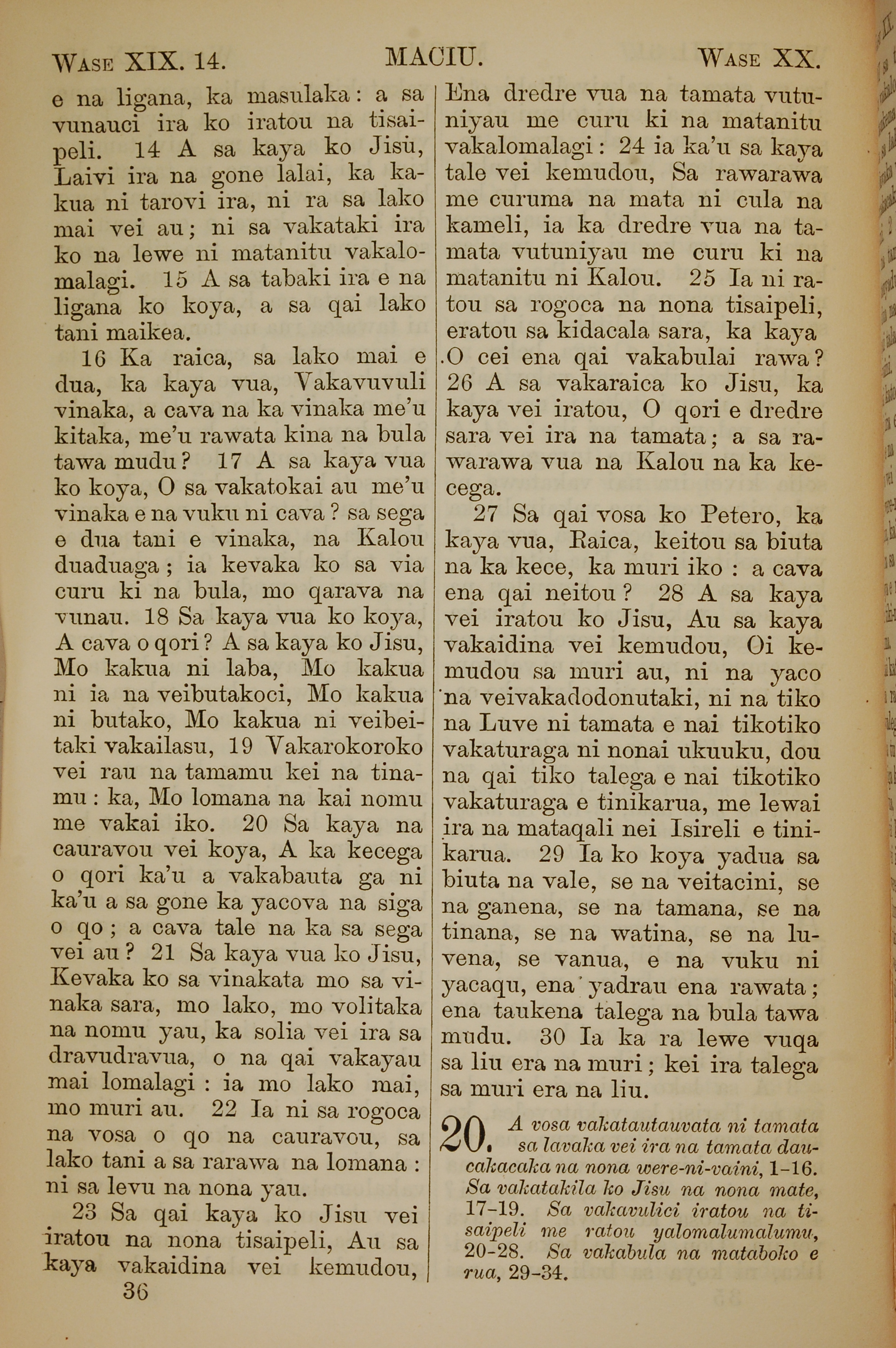 1858年斐济文新约全书 马太福音 19 章 14 节到 19 章 30 节