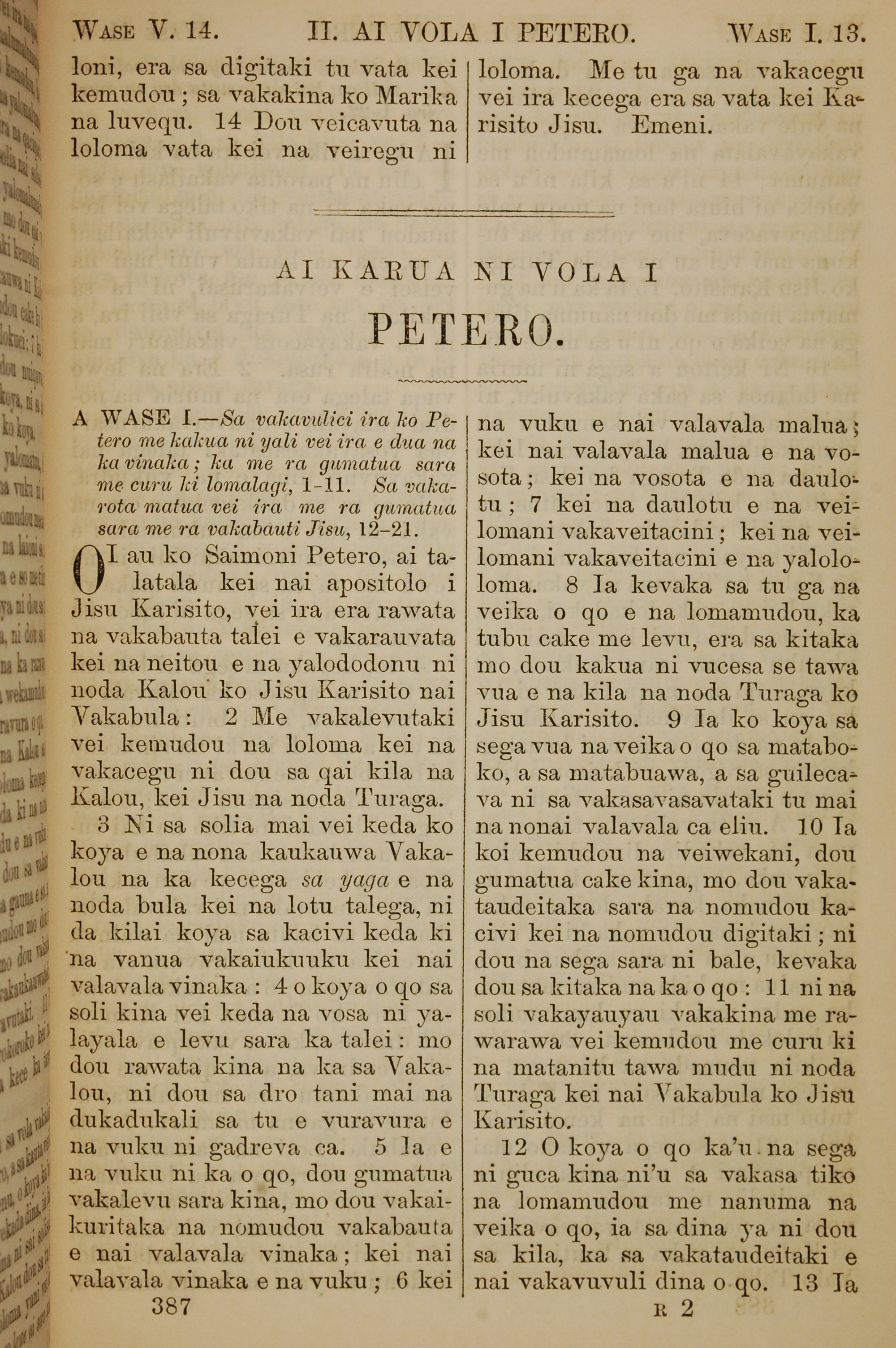 1858年斐济文新约全书 彼得后书 1 章 1 节到 1 章 12 节