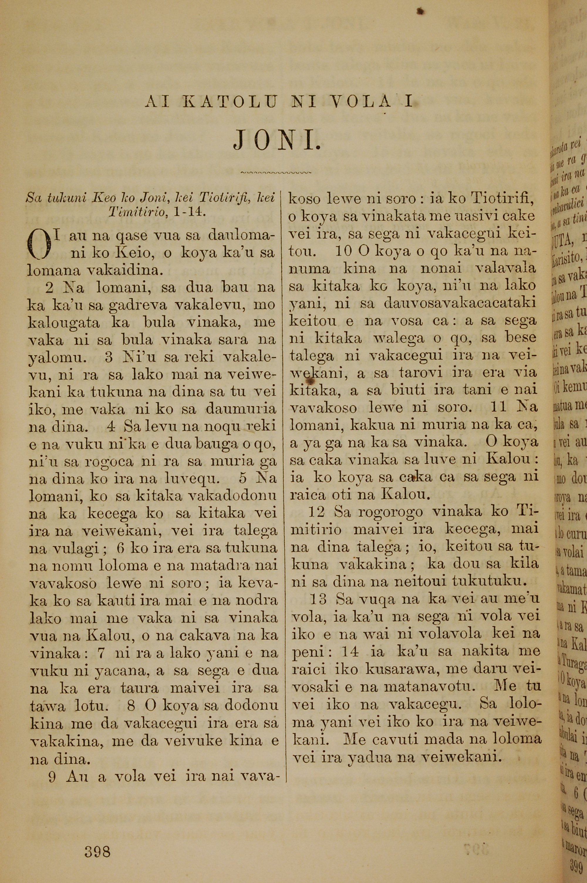 1858年斐济文新约全书 约翰三书 1 章 1 节到 1 章 14 节