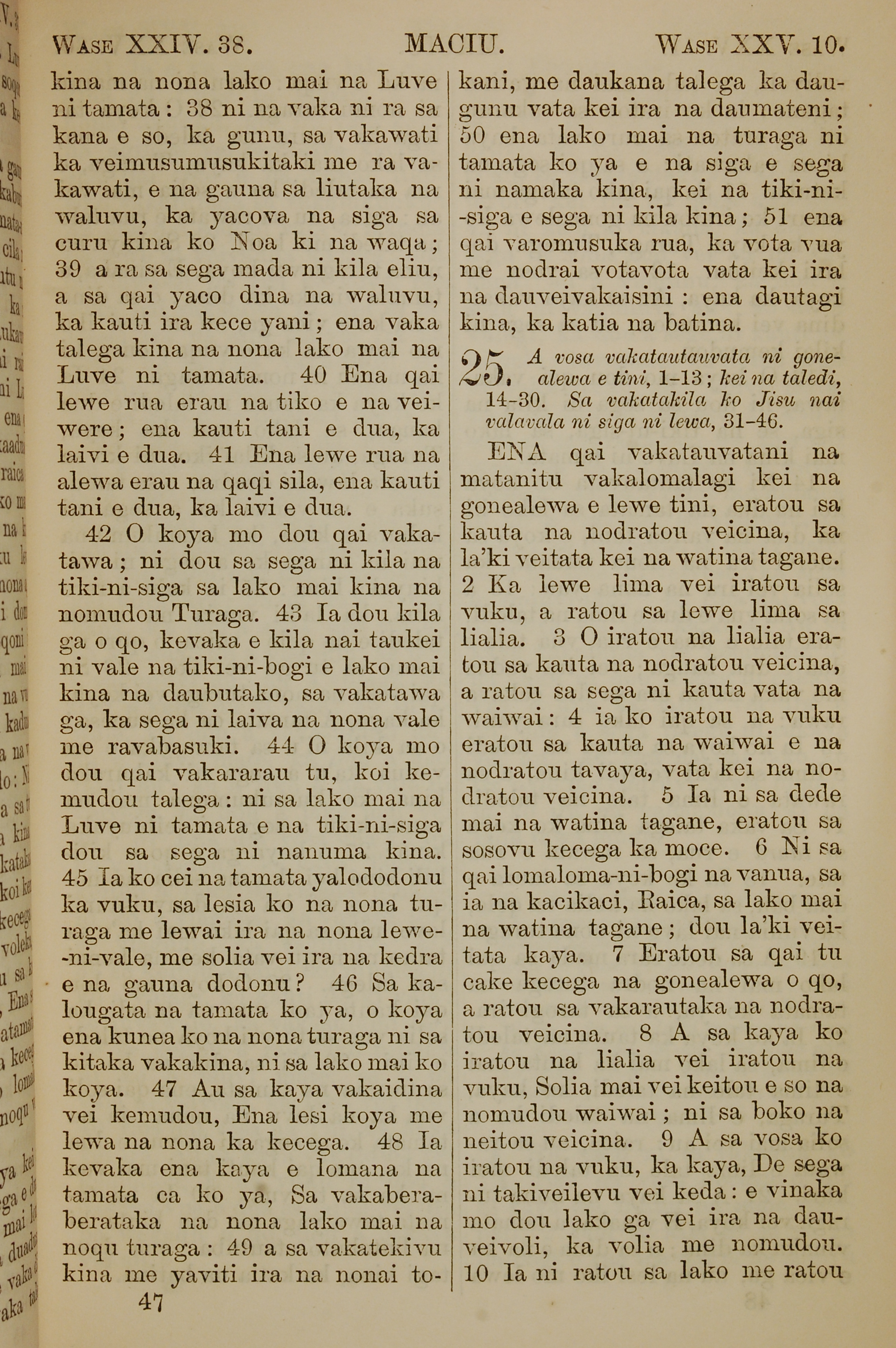 1858年斐济文新约全书 马太福音 24 章 38 节到 25 章 10 节