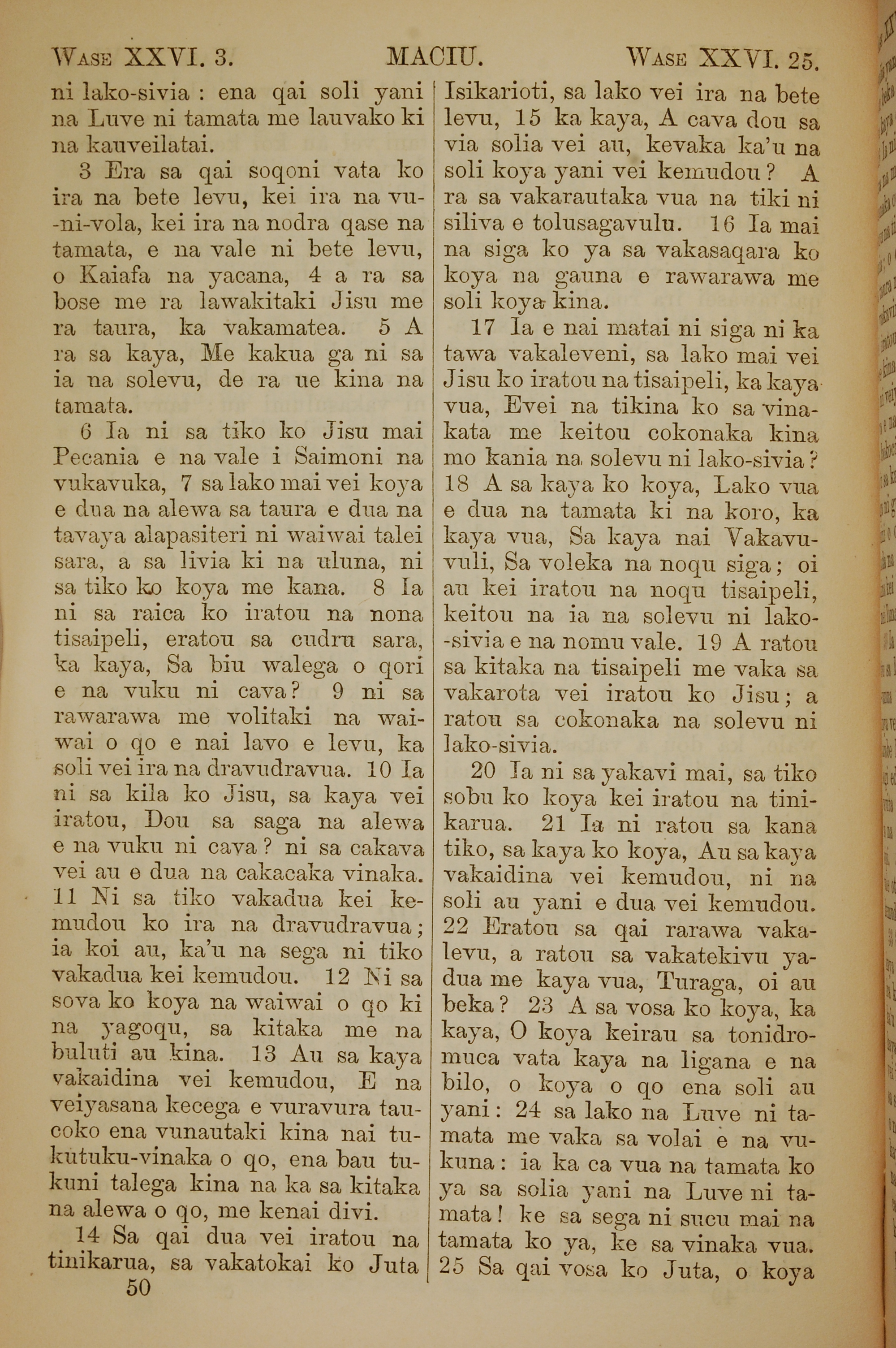 1858年斐济文新约全书 马太福音 26 章 3 节到 26 章 25 节