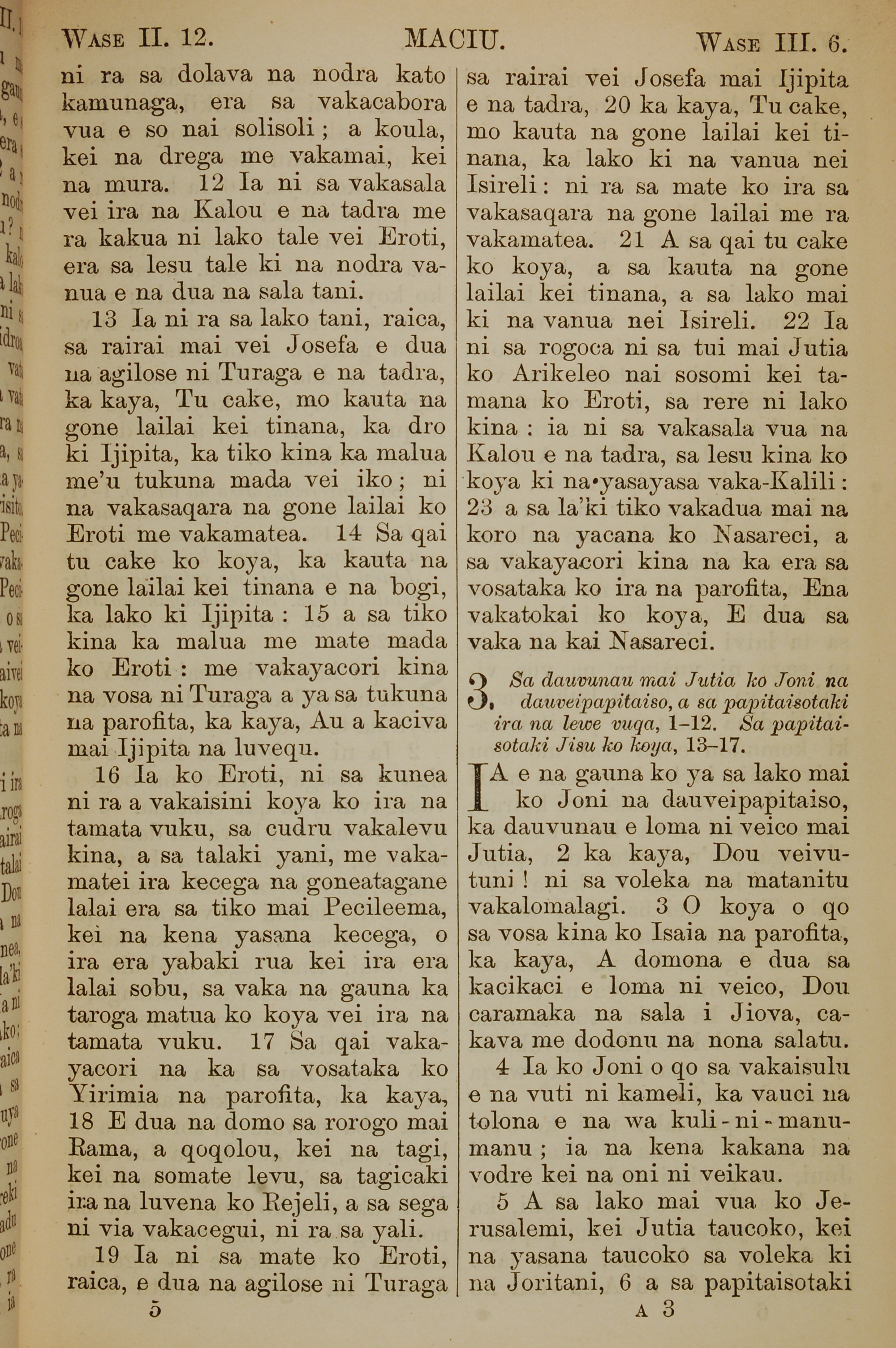 1858年斐济文新约全书 马太福音 2 章 12 节到 3 章 6 节