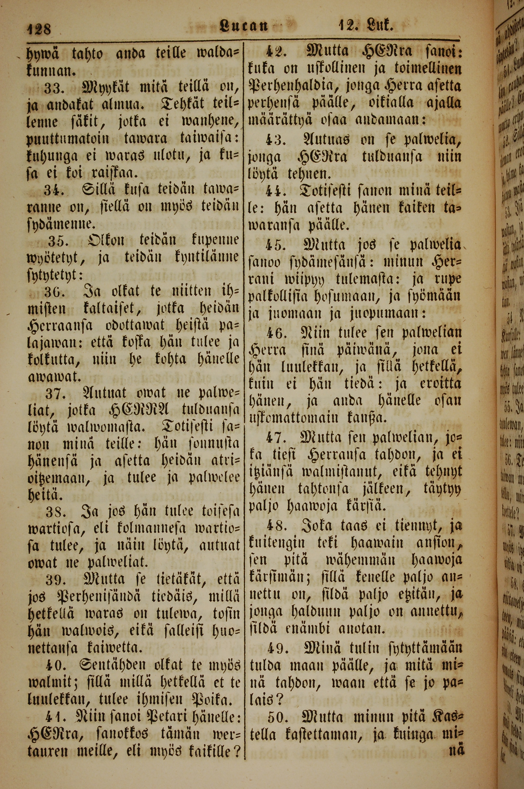 1861年新约全书 路加福音 12 章 33 节到 12 章 50 节