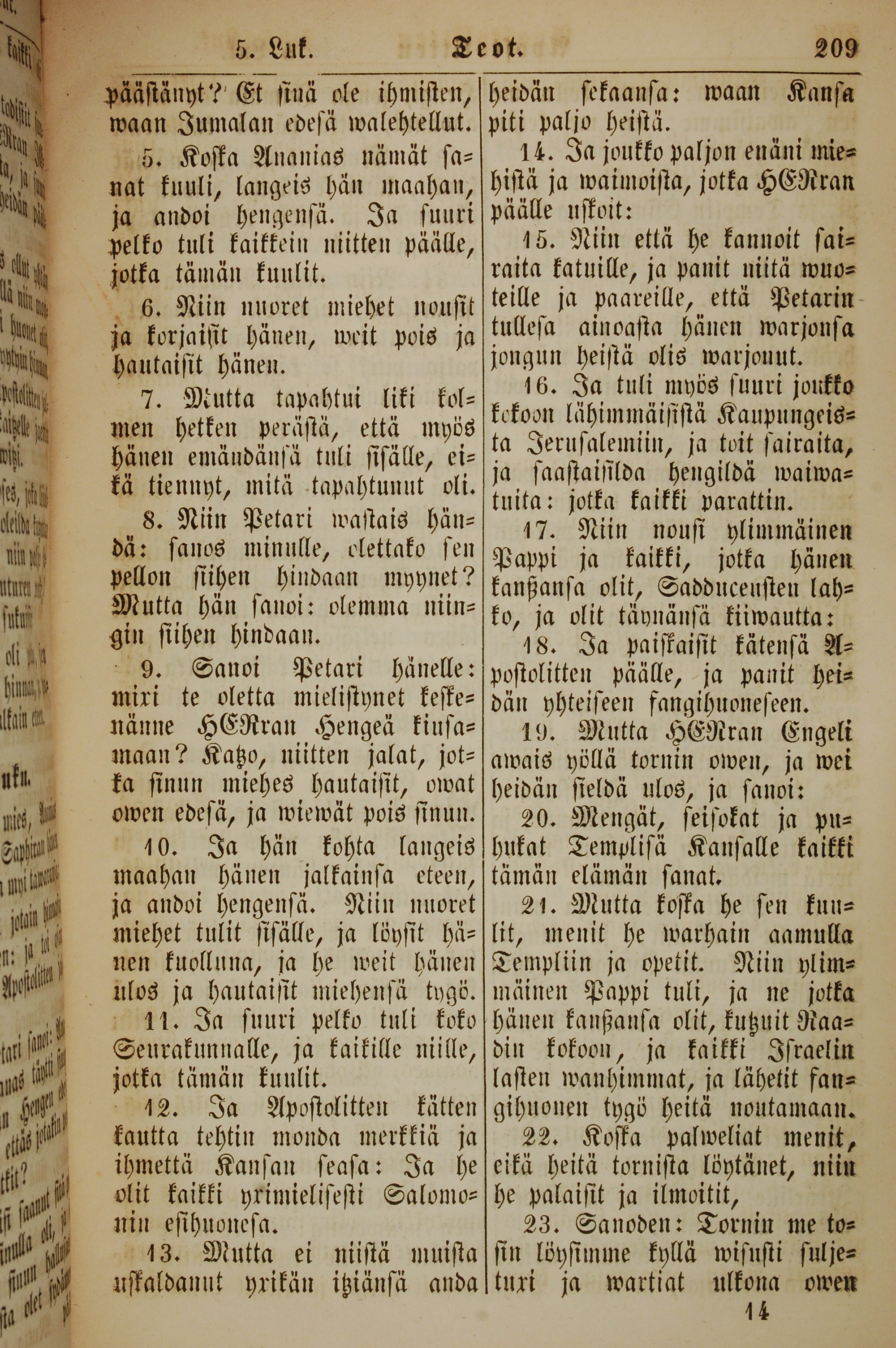 1861年新约全书 使徒行传 5 章 5 节到 5 章 23 节