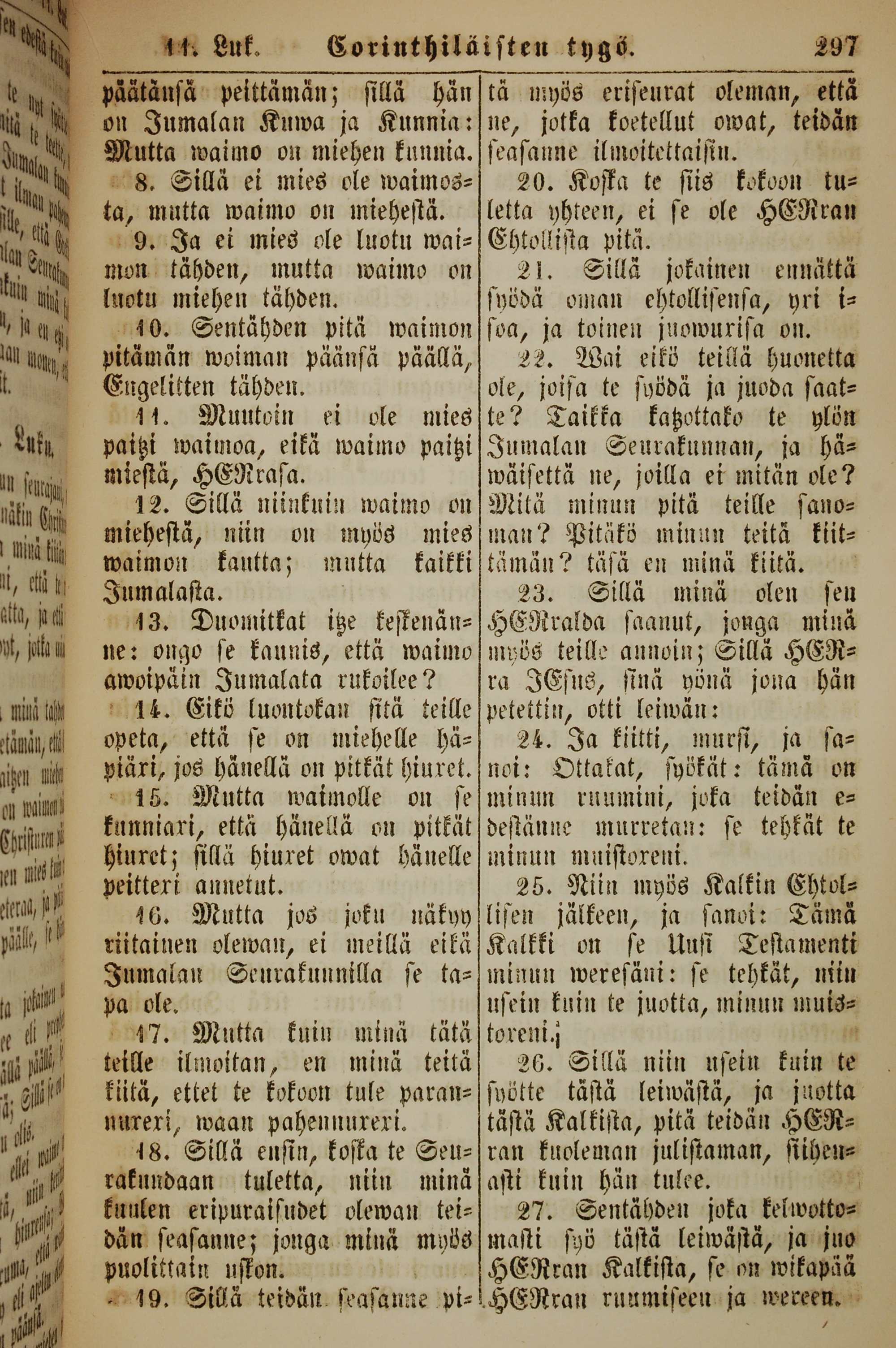1861年新约全书 哥林多前书 11 章 8 节到 11 章 27 节
