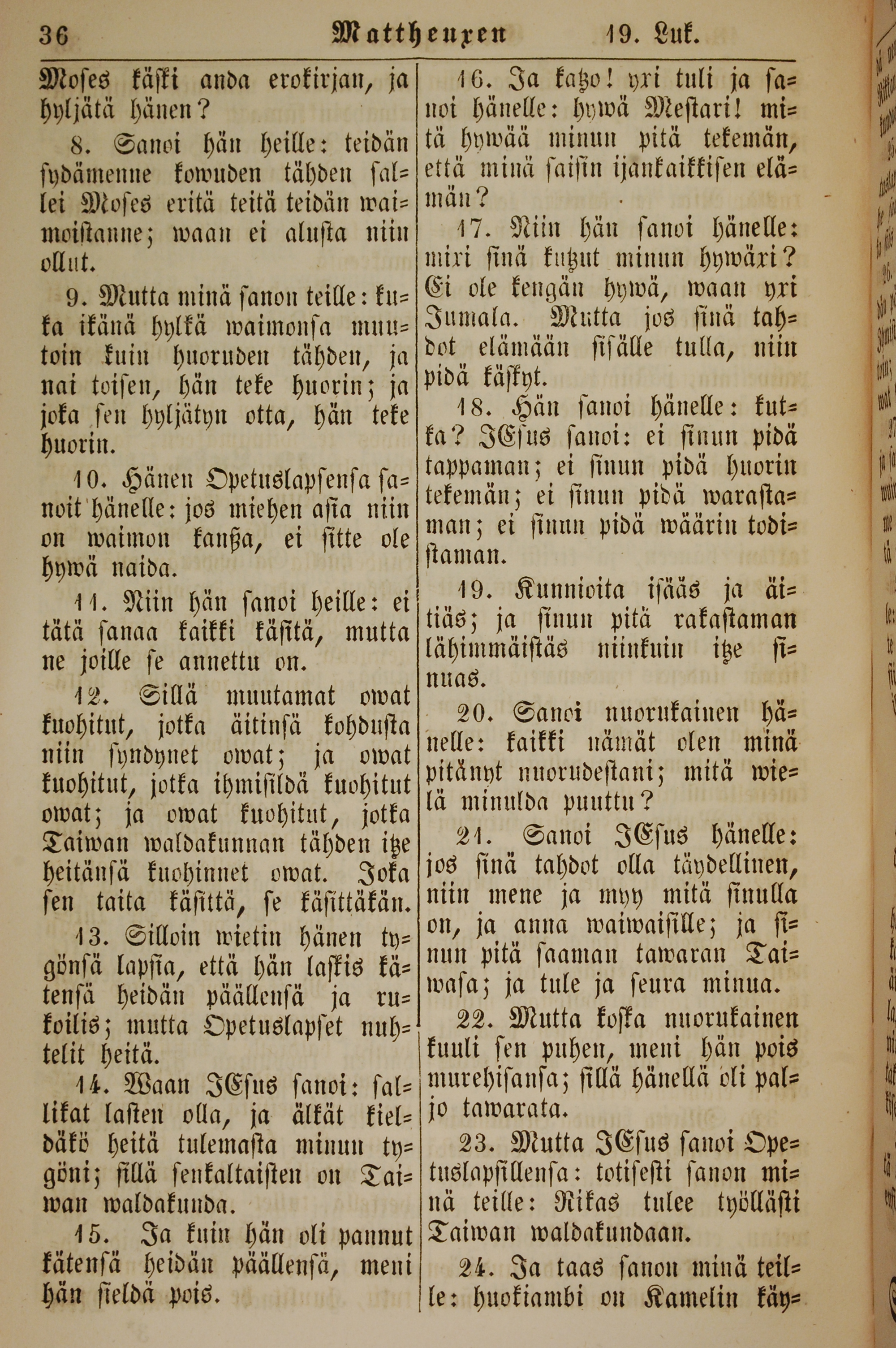 1861年新约全书 马太福音 19 章 8 节到 19 章 24 节