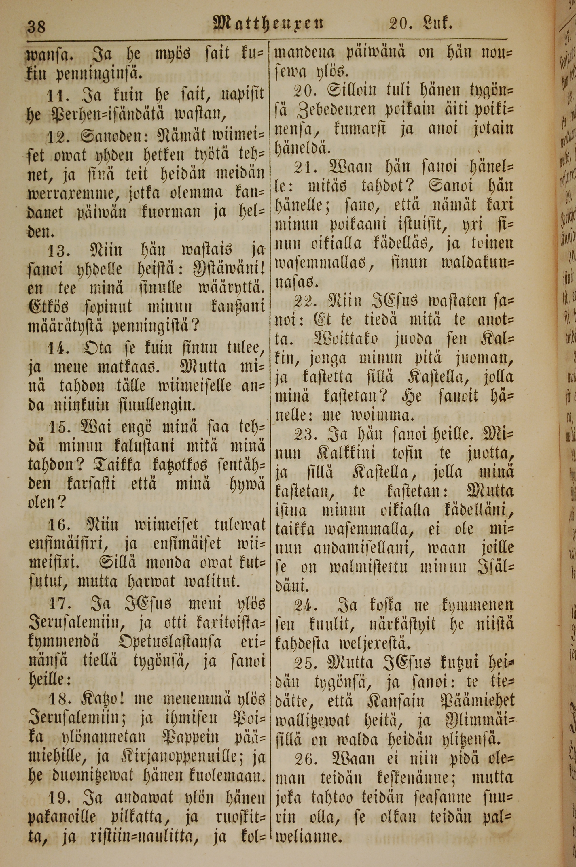 1861年新约全书 马太福音 20 章 11 节到 20 章 26 节