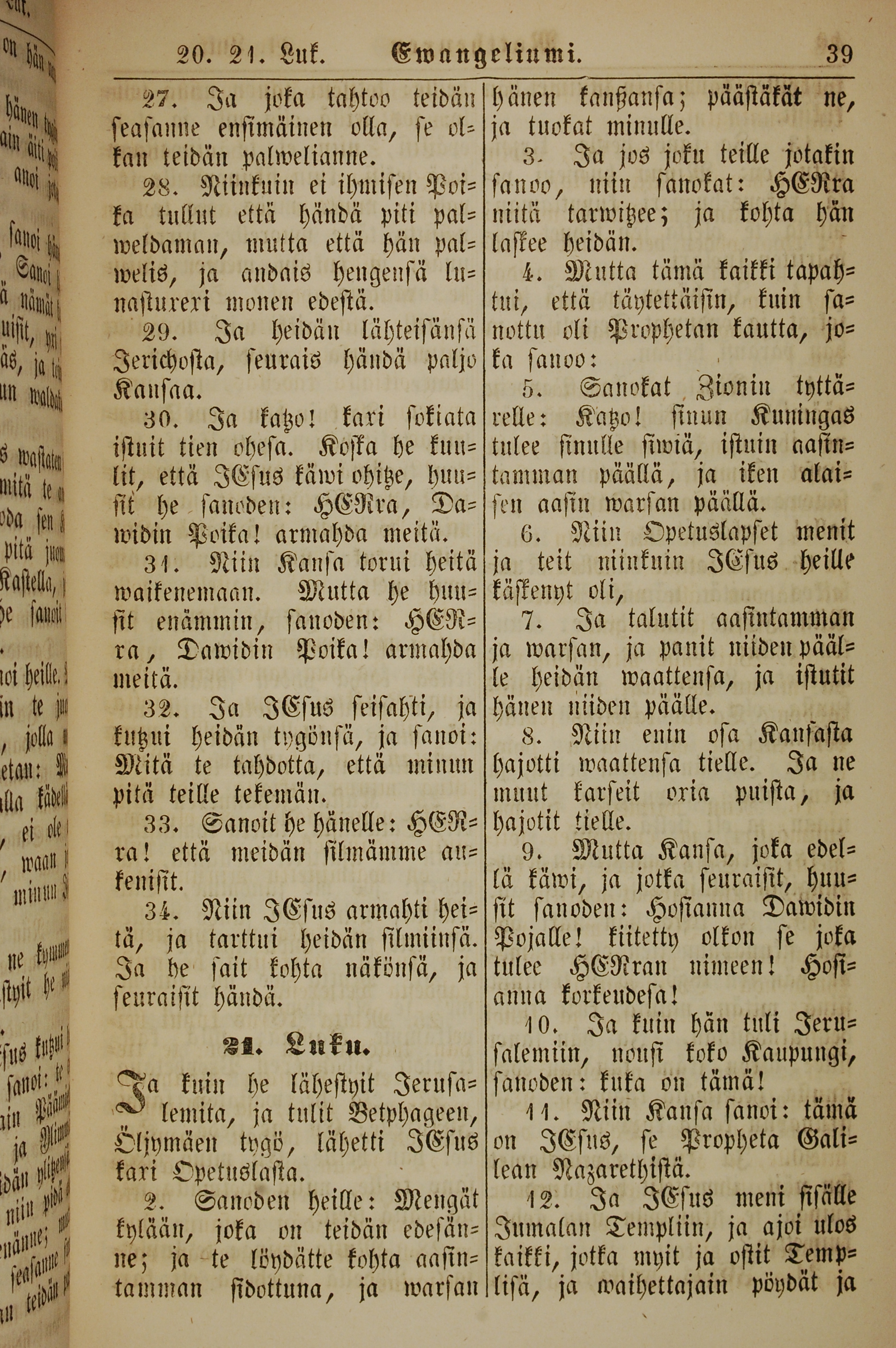 1861年新约全书 马太福音 20 章 27 节到 21 章 12 节
