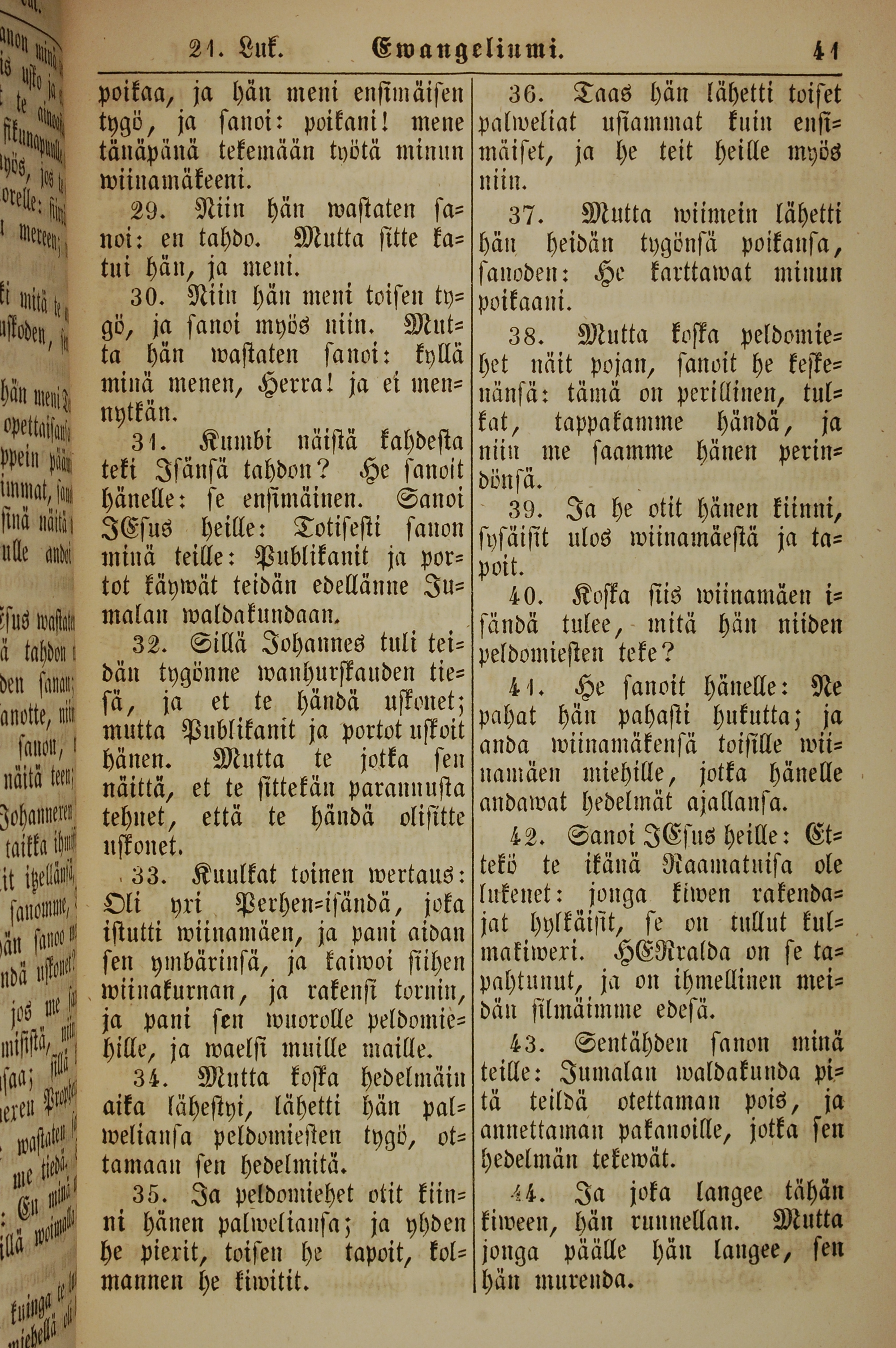 1861年新约全书 马太福音 21 章 29 节到 21 章 44 节