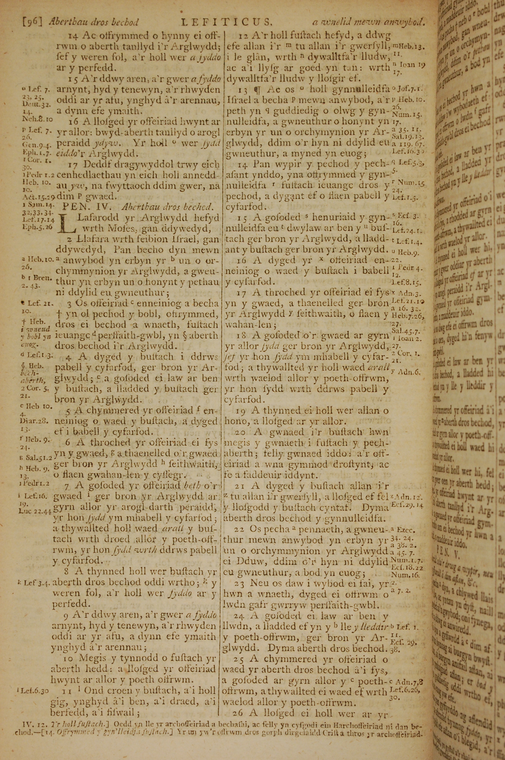 1796年威尔斯文新旧约全书 利未记 3 章 14 节到 4 章 26 节