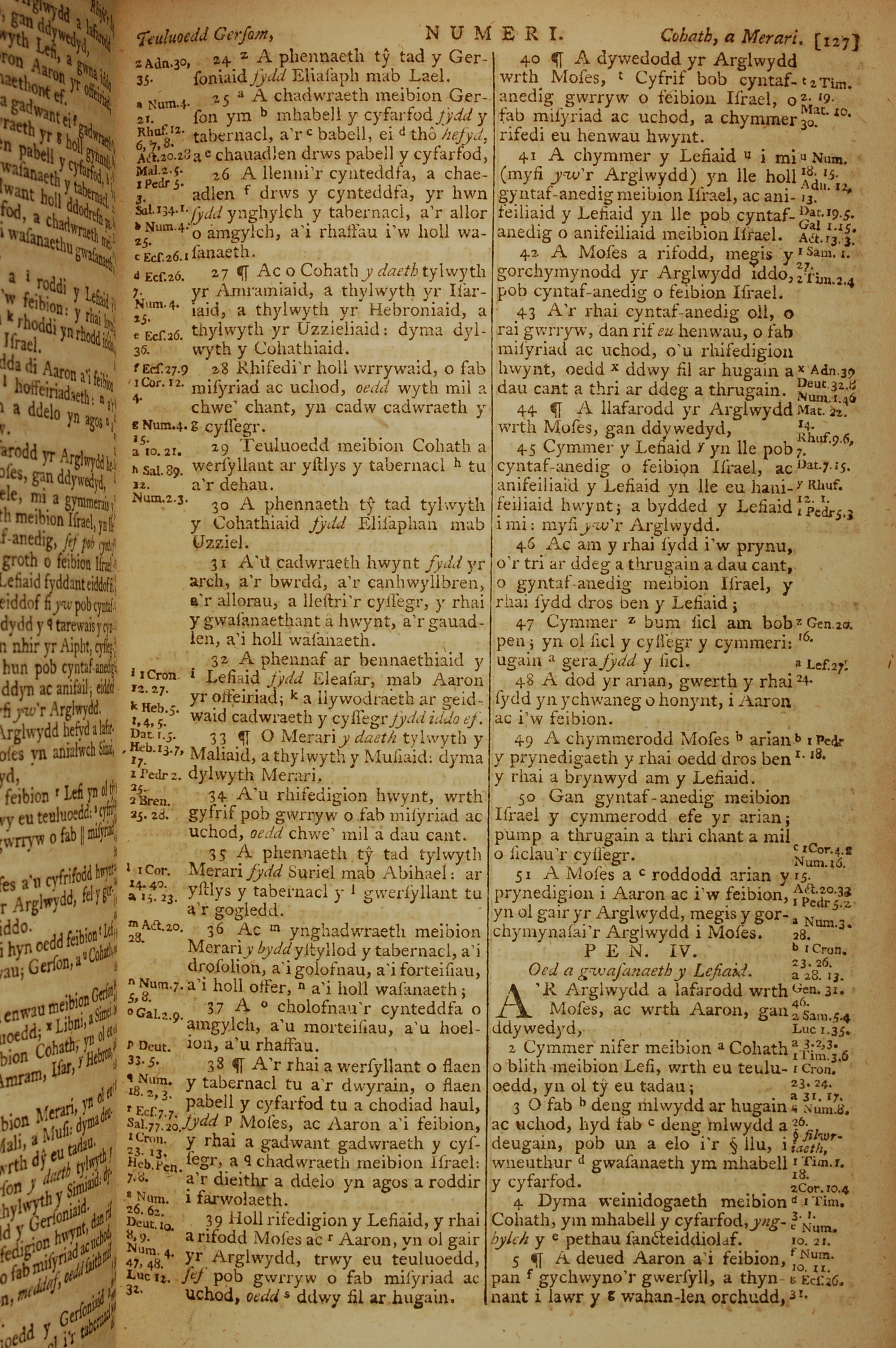 1796年威尔斯文新旧约全书 民数记 3 章 24 节到 4 章 5 节